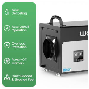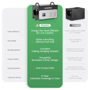 O Desumidificador de Espaço de Rastejamento de 61 litros remove até 61 litros de umidade por dia abaixo de 35°C, 90% de umidade relativa, com um poderoso motor de alta escova e um fluxo de ar máximo de 206 CFM, reduzindo efetivamente a umidade em espaços de até 696,77 m². A umidade é ajustável de 10 a 98% de umidade relativa, oferecendo maior controle do que a maioria dos dispositivos que variam de 20 a 80% de umidade relativa. Ideal para uso comercial, industrial, espaços de rastejamento, salas de armazenamento, garagens, ambientes residenciais e escritórios. Mais Eficiente com ENERGY STAR: O Desumidificador Mais Eficiente com ENERGY STAR usa 45% menos energia do que os modelos não certificados e 25% menos do que as unidades ENERGY STAR padrão. Funcionando 24 horas por dia, tornando-o uma escolha econômica e ecológica para residências, porões e empresas. Considere não apenas o custo inicial, mas as economias a longo prazo – este modelo eficiente em energia oferece um melhor controle de umidade e maior economia ao longo da vida útil.