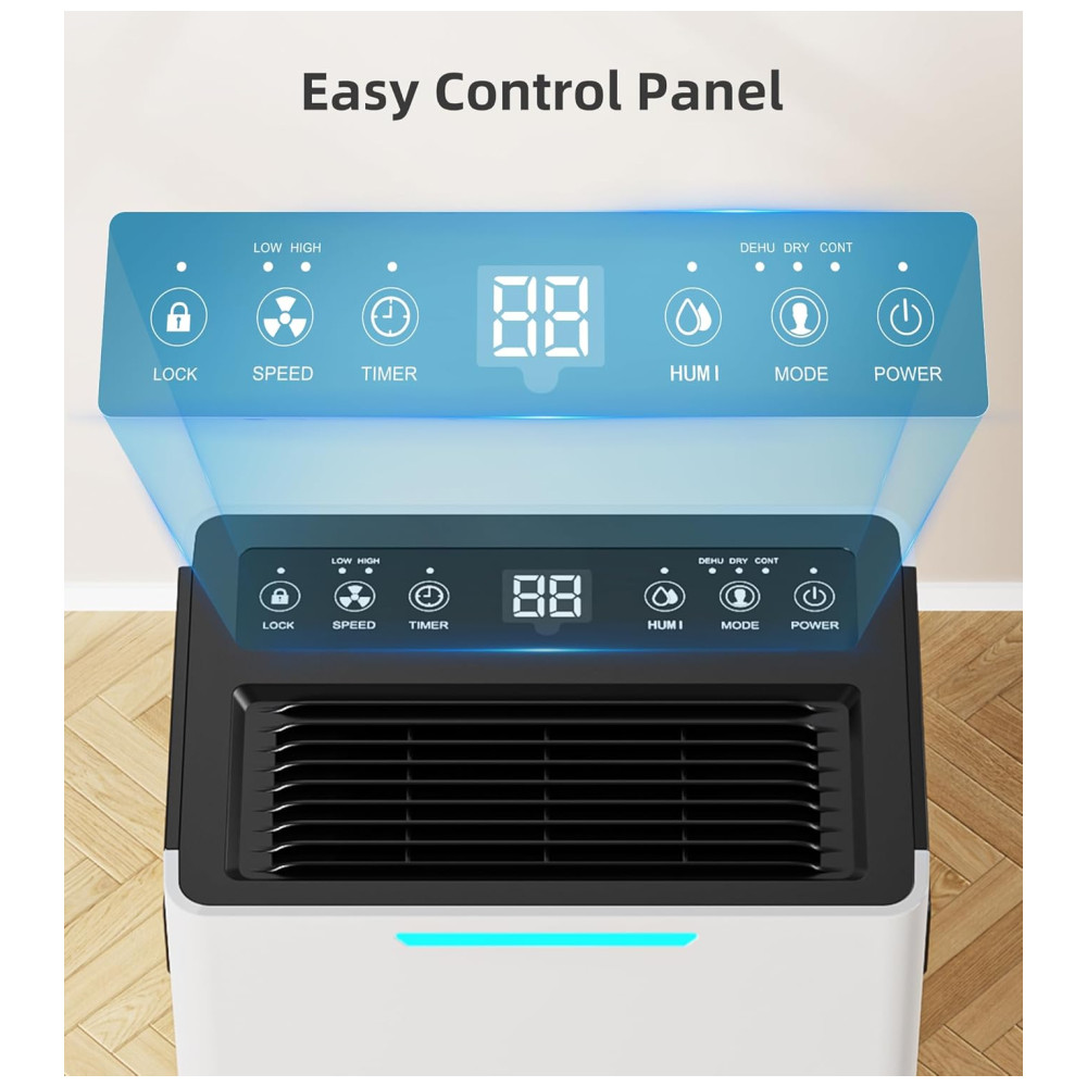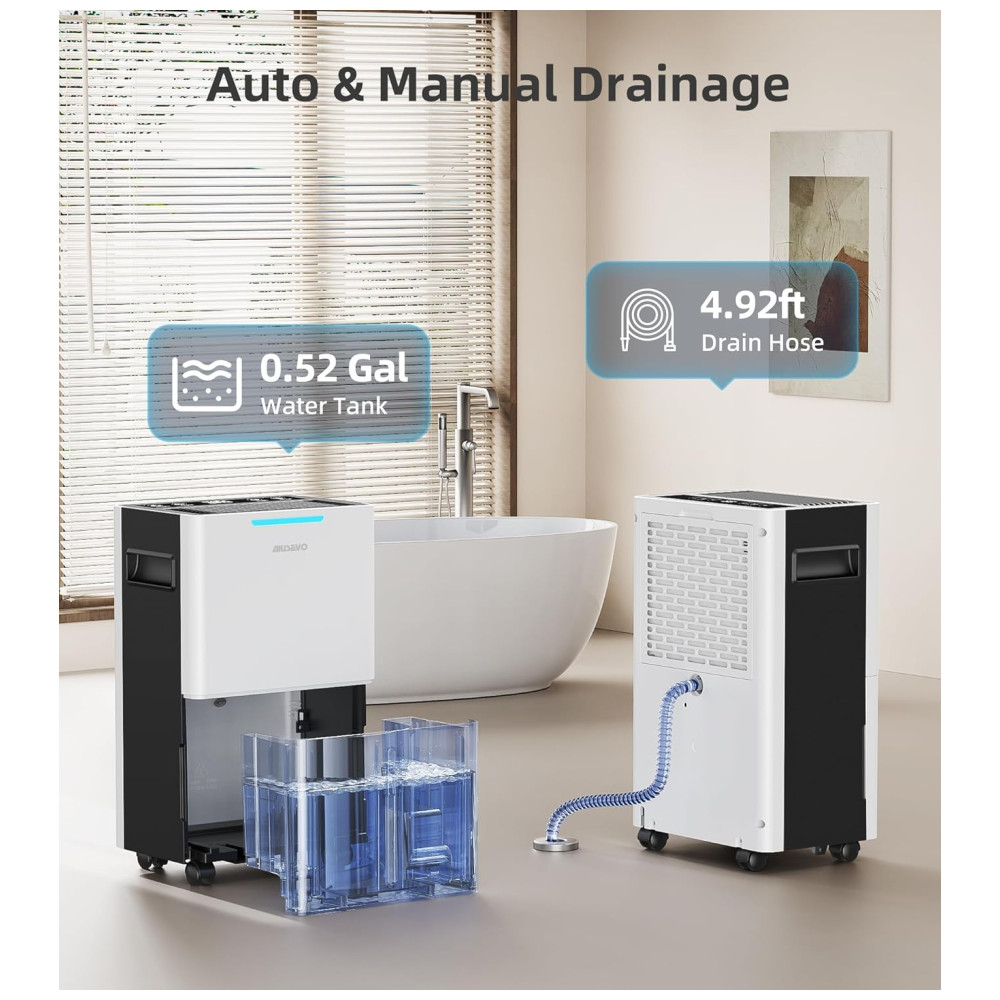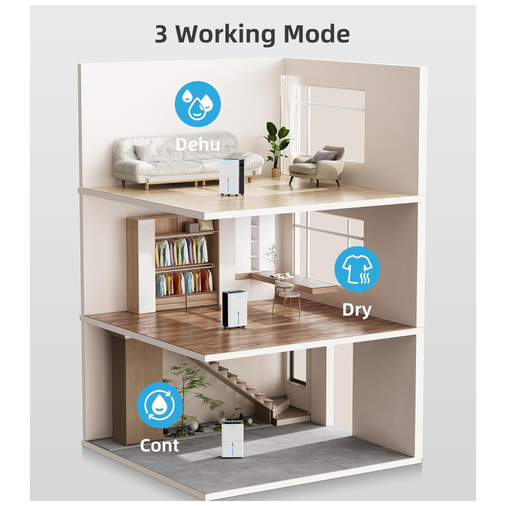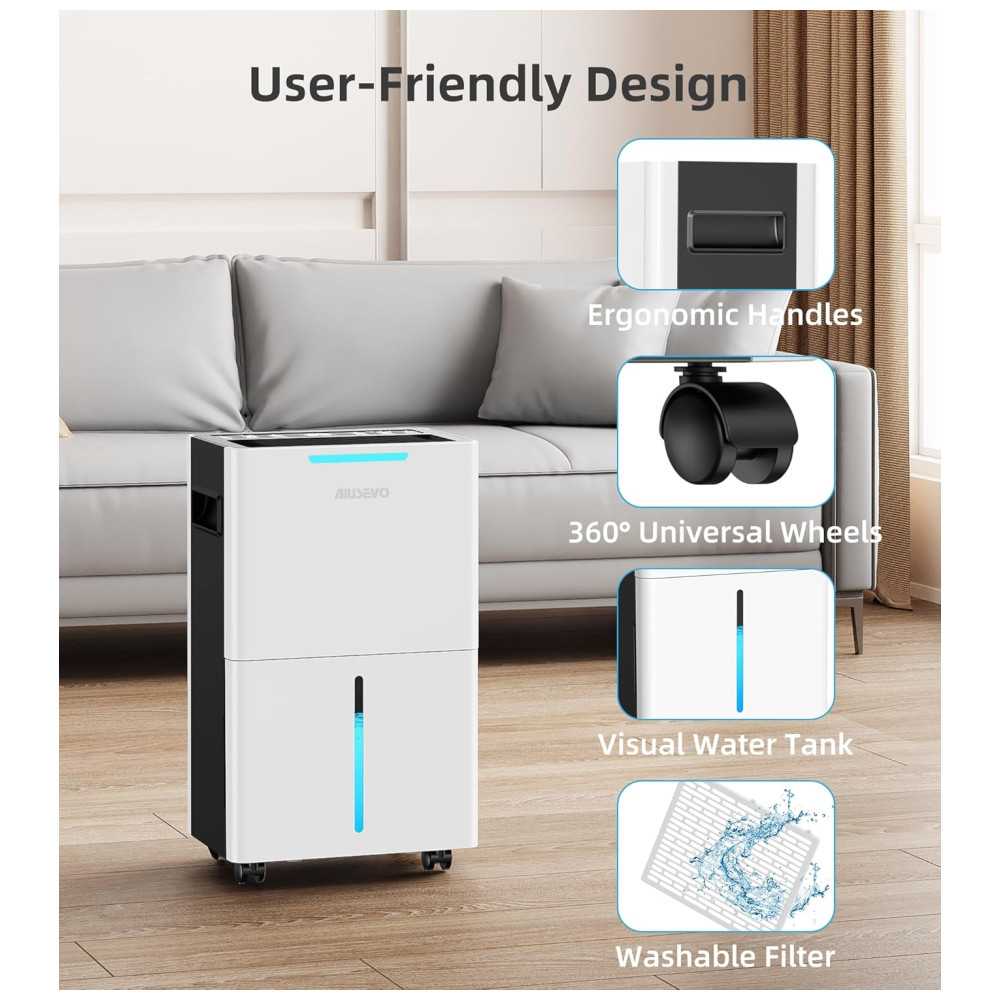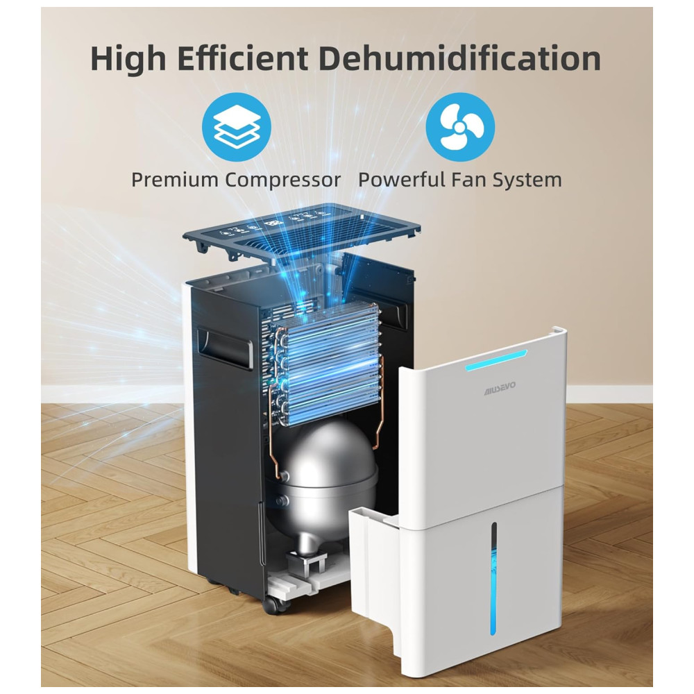 O Desumidificador de Alta Eficiência de 139 metros quadrados da Aiusevo foi projetado com um compressor de alto desempenho para remover até 9,93 litros de umidade por dia a 35°C e 90% de umidade relativa. Perfeito para ambientes de até 139 metros quadrados, como porões, quartos, banheiros, salas de estar, sótãos e até mesmo um RV. Este desumidificador mantém seu ambiente seco, confortável e saudável. Com três modos versáteis de desumidificação, controle inteligente de umidade, sistema de drenagem conveniente e design amigável para fácil uso e manutenção.