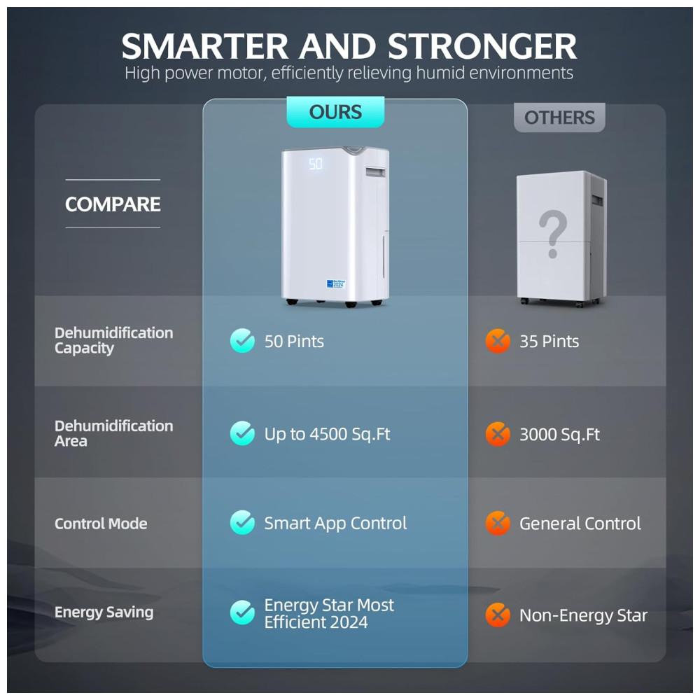 Desumidificador de 418 metros quadrados para porão 2366 litros Estrela de Energia para Casa com Mangueira de DrenoBBianLyy