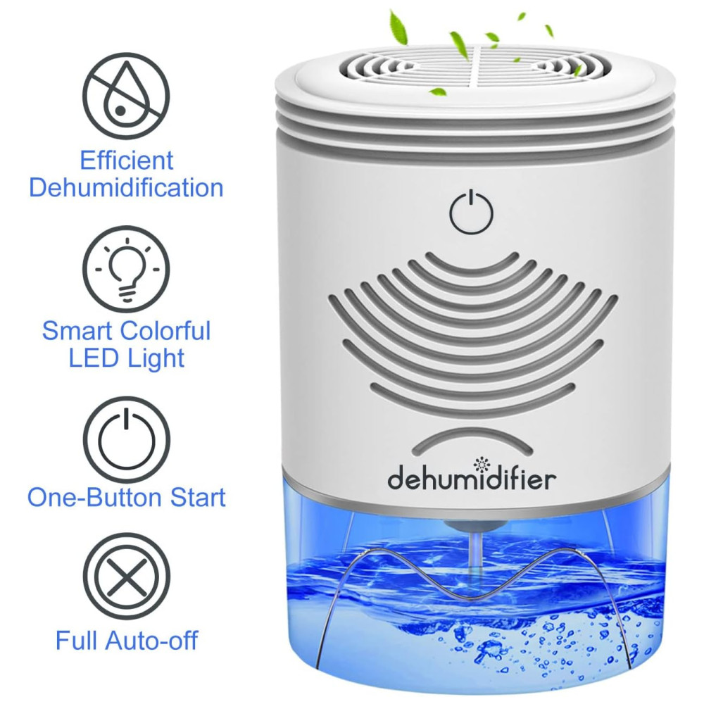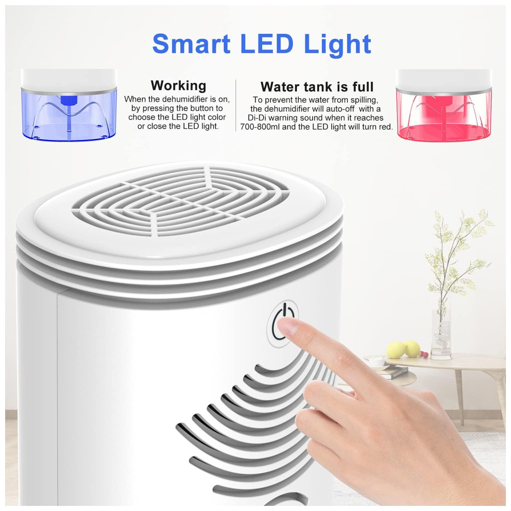 Fácil operação e luz noturna inteligente o controle de um botão e o design de atmosfera inteligente ajudam a operar a unidade facilmente. Você só precisa tocar no botão para escolher sua cor favorita para adicionar uma atmosfera romântica ou desligar a luz ambiente quando precisar. O desumidificador é projetado em tamanho compacto e leve, você pode movê lo facilmente para diferentes espaços onde quiser para manter a umidade do ar saudável para sua casa, quarto, banheiro, RV, porões, cozinha, garagem, armários, etc