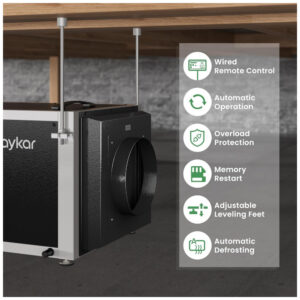 O Desumidificador de Crawl Space de 74 litros da Waykar remove até 74 litros de umidade por dia,90% de umidade relativa, cobrindo até 603 m2. Com um poderoso fluxo de ar de 206 CFM e motor sem escovas de alta eficiência, oferece controle ajustável de umidade de 10 a 98% de umidade relativa, proporcionando melhor controle do que a maioria dos dispositivos 30-80% de umidade relativa. Ideal para espaços comerciais, industriais, crawl spaces, porões, garagens e armazéns. Controle Remoto para Ajuste Fácil de Umidade Este desumidificador comercial de crawl space inclui um painel de controle de alto desempenho, normalmente vendido separadamente por cerca de 100 para outros modelos. O painel oferece flexibilidade excepcional de instalação, permitindo ajustar remotamente a umidade, seja o aparelho em um espaço de rastejamento estreito ou um porão espaçoso. O controle remoto pode ser instalado a até 10 metros de distância, minimizando a necessidade de acesso frequente a áreas úmidas e escorregadias, aumentando a conveniência e a segurança. Design Dual Duct para Melhor Valor Este desumidificador all-in-one tem um design com dois dutos separados de entrada e saída, ao contrário da maioria dos modelos que possuem apenas uma saída com duto. Muitos modelos dual duct no mercado custam mais de 1400. Este tipo de desumidificador é mais adequado para desumidificação de casa inteira de sistemas de HVAC. Esse design melhora o fluxo de ar, controle de umidade e gerenciamento de calor, tornando-o eficiente e adaptável a uma variedade de ambientes. Controle Preciso com Sensor de Umidade Equipado com um sensor de umidade de 5 metros, este desumidificador de sótão fornece detecção de nível de milissegundos para um controle preciso de umidade e ajustes. Por favor, certifique-se de instalar um sensor de umidade, somente assim todas as funções automatizadas do aparelho funcionarão corretamente. O desumidificador é certificado pela TUV, um padrão mais rigoroso que a maioria das certificações, garantindo um desempenho e confiabilidade de primeira classe. Drenagem Fácil e Degelo Automático Este desumidificador de porão garante uma drenagem contínua sem esforço. Basta posicionar o aparelho sobre um ralo, conectar a mangueira de drenagem de 3 metros inclusa e desfrutar da remoção eficiente de umidade sem interrupções. Ele também conta com degelo automático, proteção contra sobrecarga, memória de desligamento, timer de 24 horas e drenagem contínua ajustável através do painel de controle, proporcionando uma conveniência e confiabilidade excepcionais para aplicações comerciais e residenciais. Opções Flexíveis de Instalação Este desumidificador foi cuidadosamente projetado com um suporte para enrolar o cabo de alimentação, pés ajustáveis para reduzir ruído e vibração, e ganchos e alças resistentes para facilitar o transporte. Esses recursos garantem uma configuração e operação sem complicações, tornando-o ideal para vários cenários e ambientes de instalação.