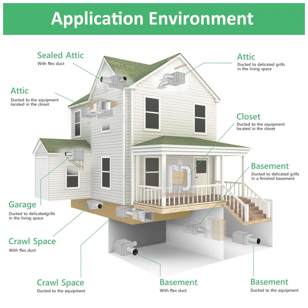 Desumidificador de Crawl Space Waykar 74 litros com Controle Remoto para até 603 m2 Desumidificador Comercial Dual Duct HVAC