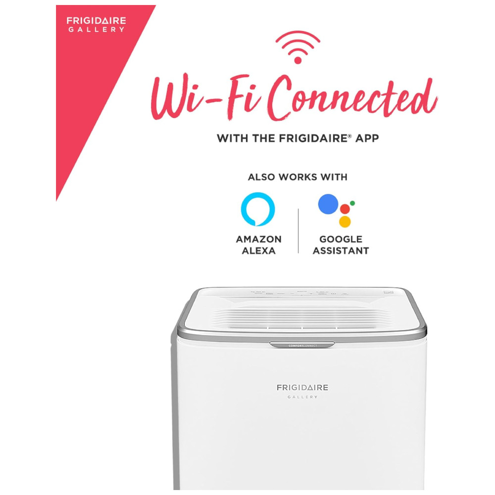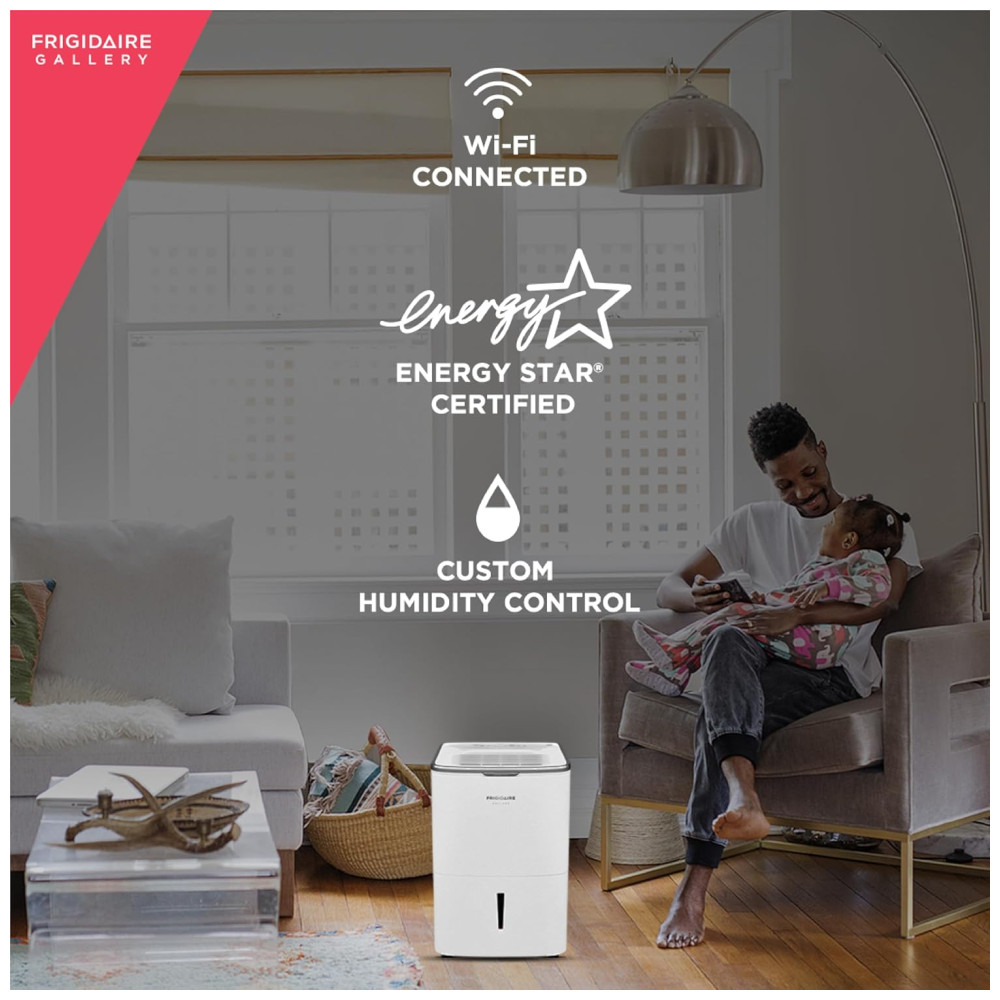 Rápido e confiável em qualquer espaço úmido, o desumidificador Frigidaire Energy Star de 50 litros com controles Wi Fi é útil para manter secos sótãos, porões, banheiros e garagens. Com o controle Wi Fi, você pode operar seu desumidificador de qualquer lugar de acordo com sua conveniência com o aplicativo Smart Appliances da Frigidaire. Ligue ou desligue a unidade, altere os níveis de umidade e seja notificado quando o balde de água estiver cheio, tudo em seu celular