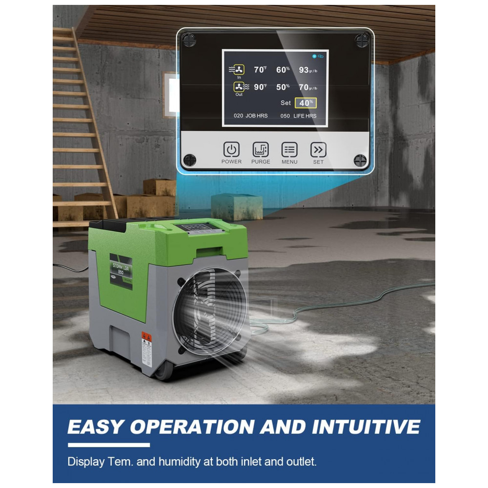 Com recursos de reinicialização automática em caso de falha de energia e degelo automático, este desumidificador possui um design humanizado que permite menos supervisão. Além disso, graças ao seu tamanho compacto, alça retrátil com rodas para transporte, recursos superiores de empilhamento e fácil acesso para manutenção, é extremamente fácil de usar e manter.