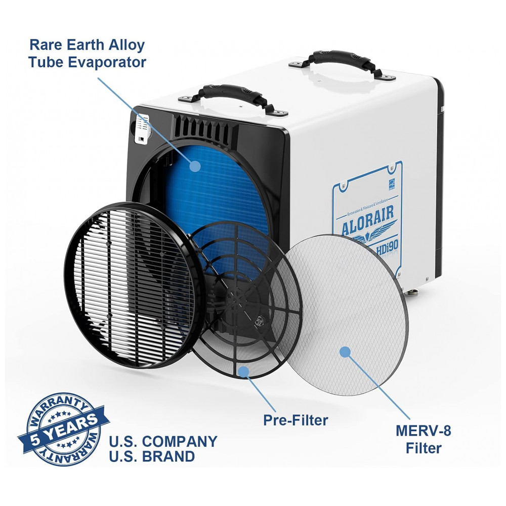 Desumidificador certificado Energy Star: remove a umidade de forma rápida e eficaz com menos energia do que os desumidificadores convencionais, sem aumentar sua conta de energia, economizando dinheiro. Será o melhor desumidificador de porão, espaço de rastreamento que você usará. Remova 42 litros por dia na condição AHAM, 93 litros na saturação, cobrindo até 241,5 metros quadrados, adequado para qualquer porão, espaço para rastejar, áreas de armazenamento, garagem, sala grande ou uso comercial.