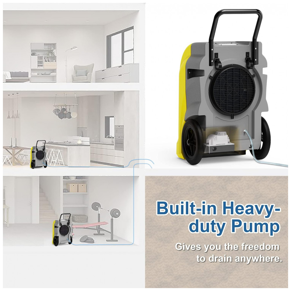 Desumidificador Industrial de 127 Litros para Ambientes Amplos com Bomba e Mangueira de Drenagem AlorAir Amarelo