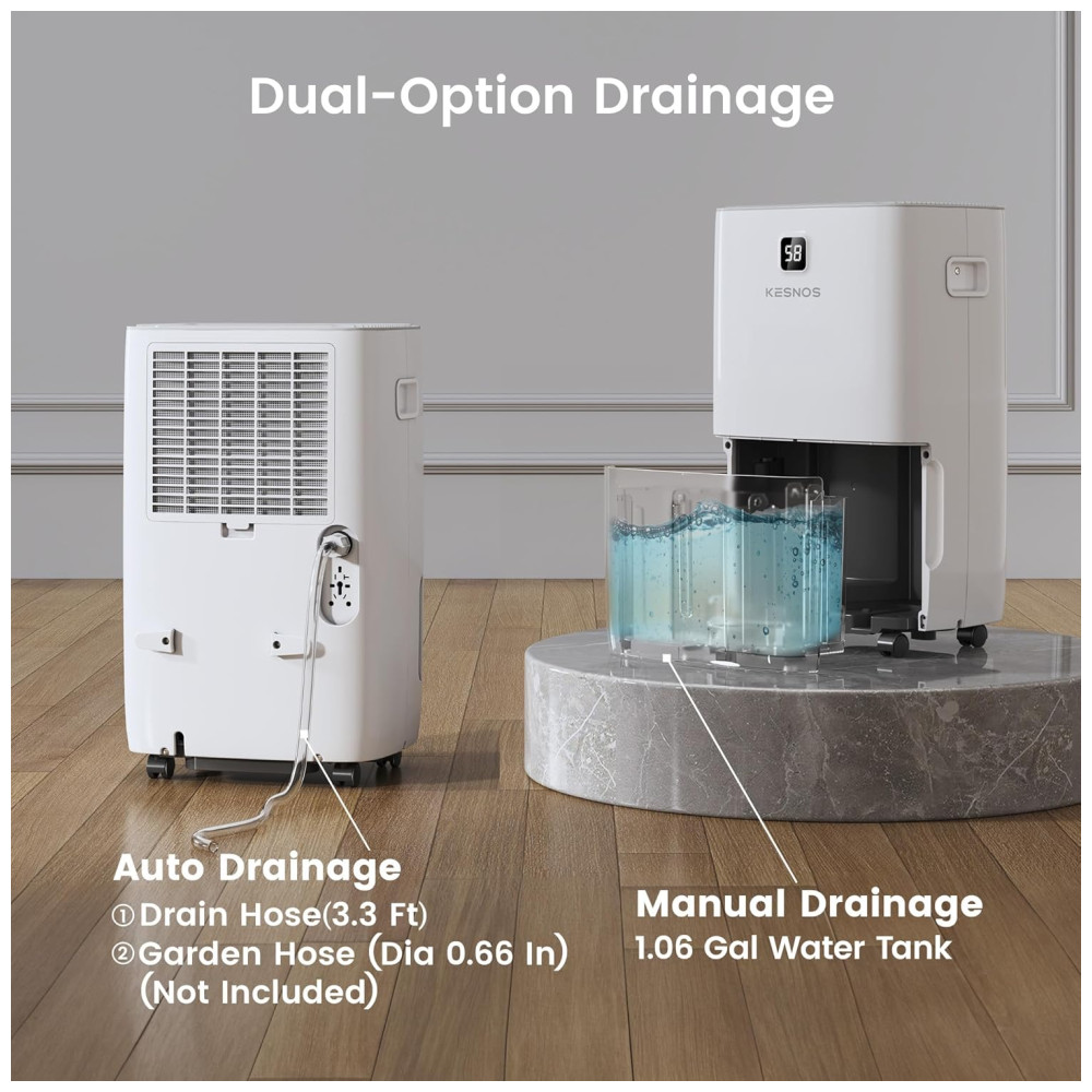 Desumidificador Kesnos 3785 Litros Economia Energética para Residências com Mangueira de Drenagem Display LED e Reservatório de 4L