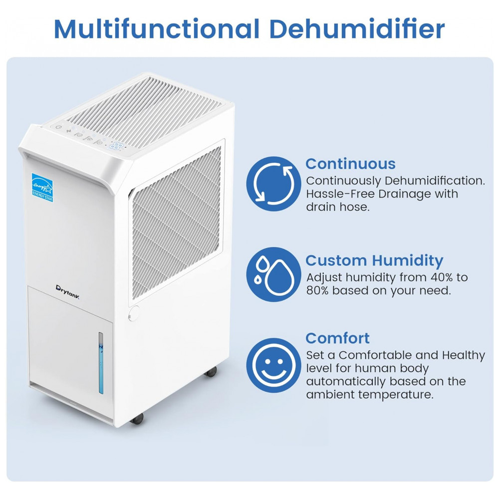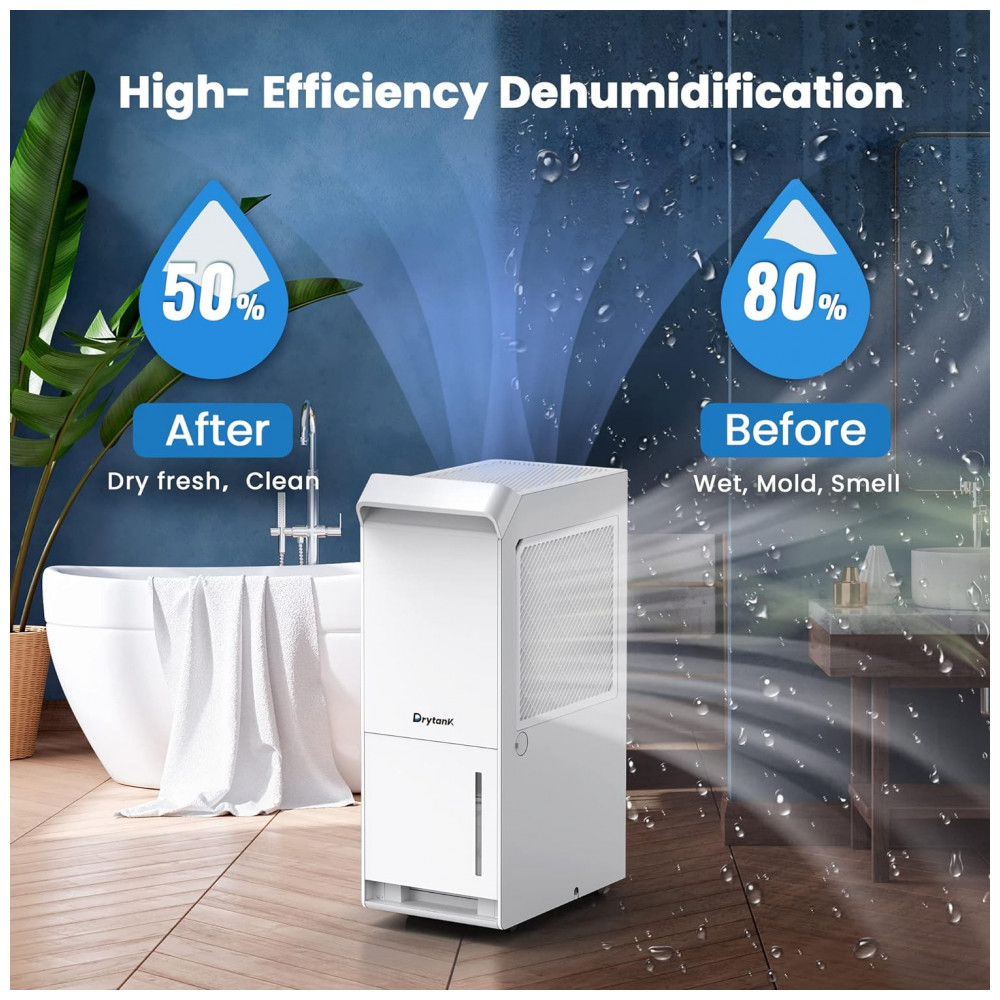 ABSORÇÃO DE UMIDADE PODEROSA desumidificador de 278 m2 para porão, remove 36 litros por dia. Controle personalizado e design de modo de desumidificação contínua, desfrute de ar saudável em 45 a 55 de umidade para casa, banheiro, lavanderia, garagem, quarto, etc.