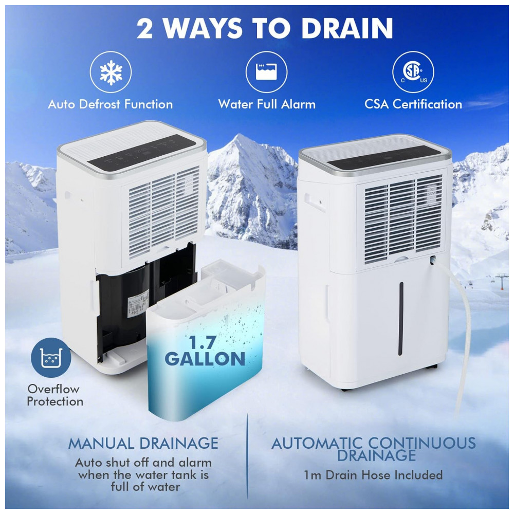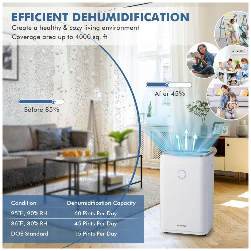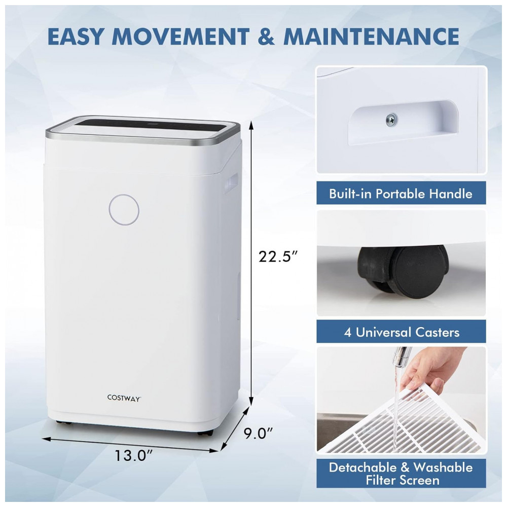 Desumidificador para Grandes Ambientes 6.4L até 370 m2 com Controle Inteligente 110V COSTWAY Branco