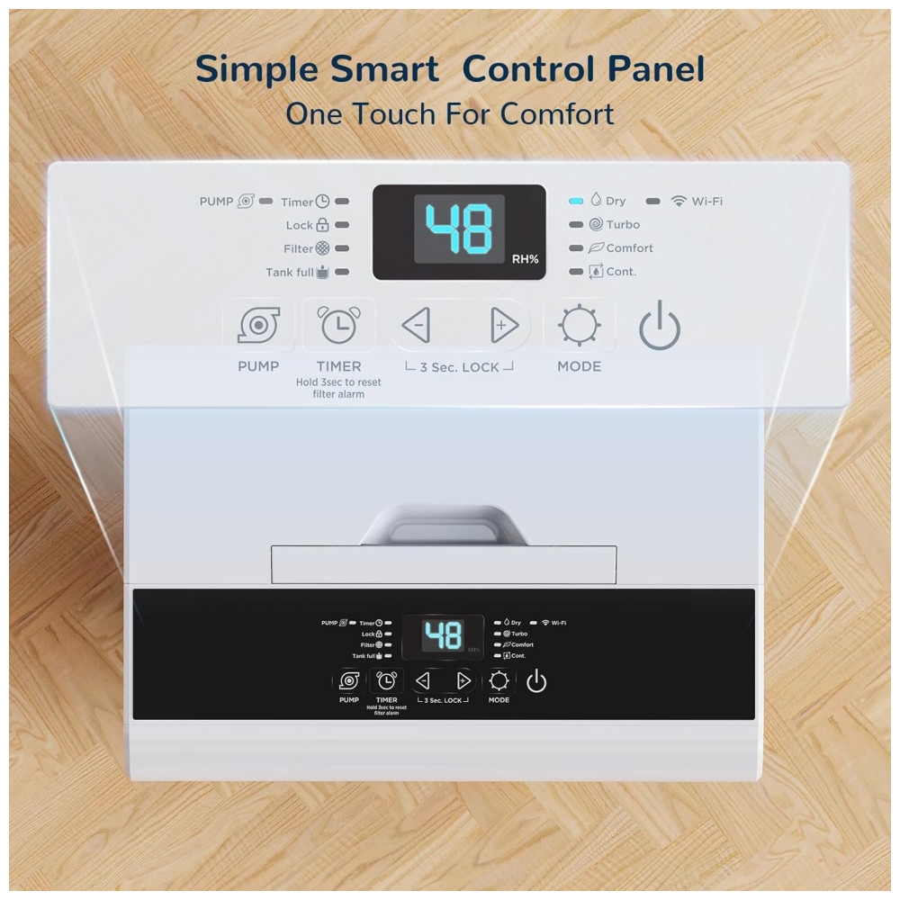 FUNÇÃO WIFI PARA ALCANÇAR O CONTROLE REMOTO INTELIGENTE Baixe o aplicativo DuraComfort em seu smartphone para controlar seu desumidificador doméstico no caminho do trabalho, ajuste as configurações de umidade, velocidade do vento e temporizador, para que você possa sentir imediatamente o ambiente de umidade confortável em casa .