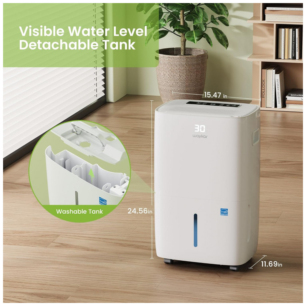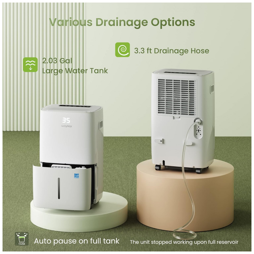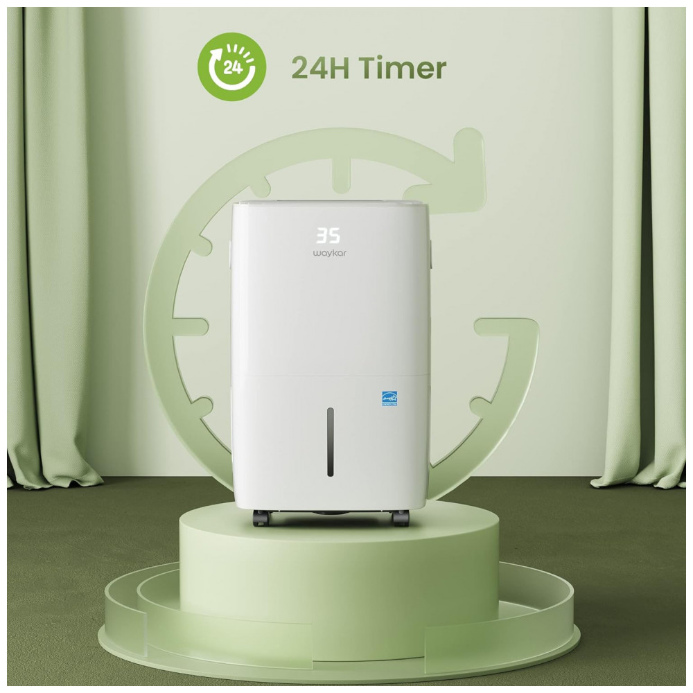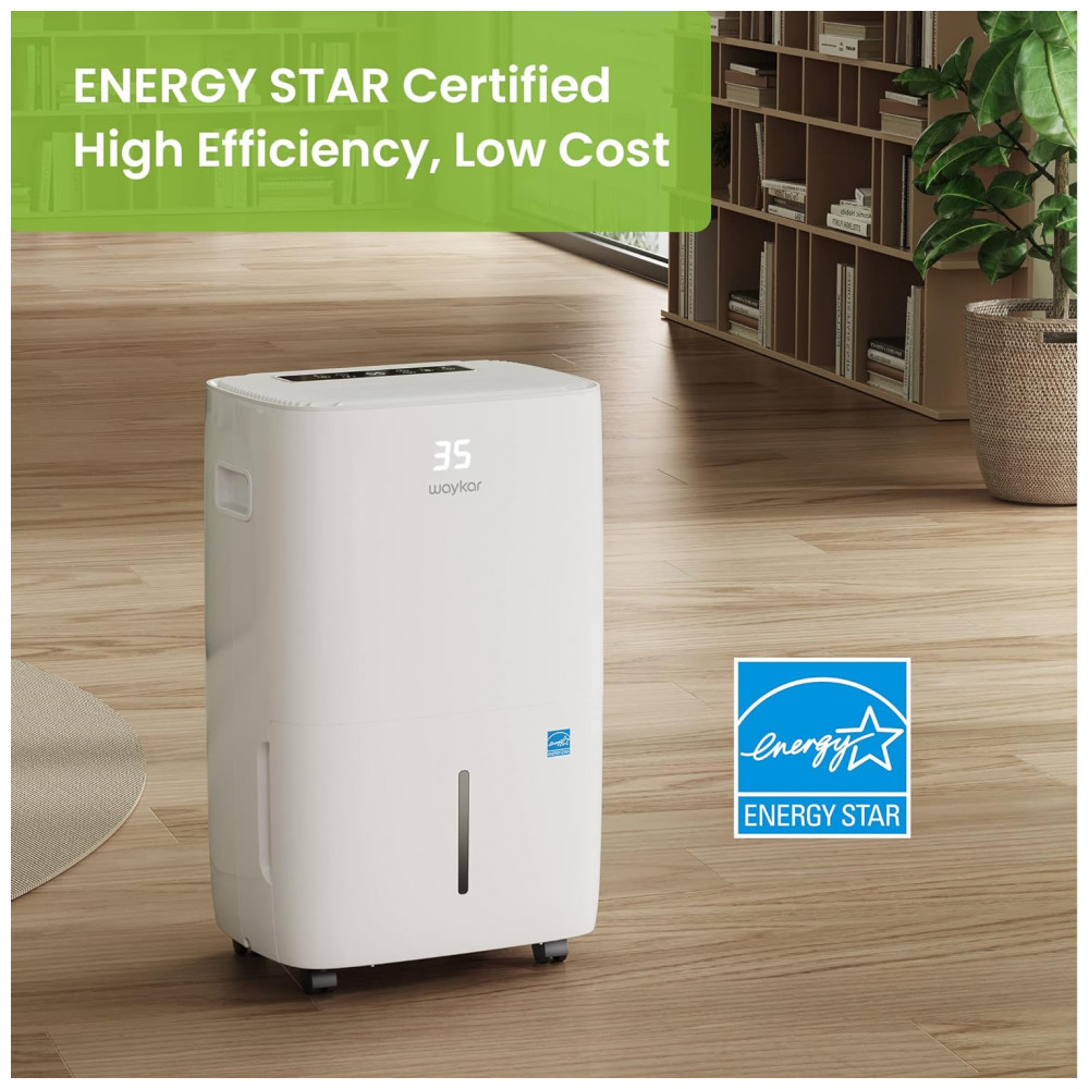 HUMIDISTAT INTELIGENTE COM ENERGY STAR O desumidificador com certificação Waykar ENERGY STAR reduz seu incômodo com a energia mantendo uma umidade ambiente ideal, para absorver a umidade de forma rápida e eficaz sem aumentar sua conta de energia. toda a sala, e ajuda a secar o local de forma eficiente. O descongelamento automático permite ainda que a unidade tenha um bom desempenho, mesmo em condições de frio.