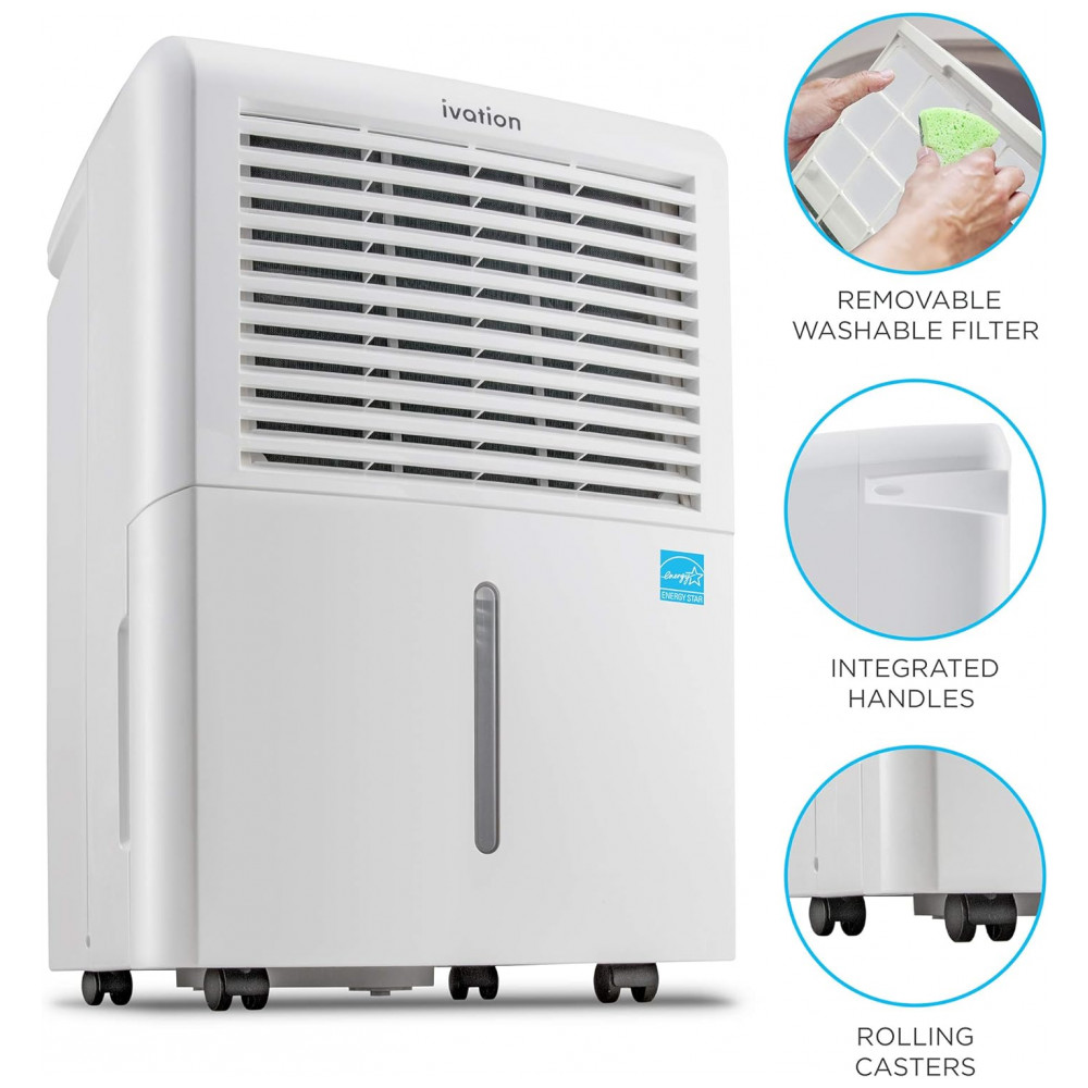 Desumidificador para Grandes Ambientes 9L até 420 m2 com Controle Inteligente e Bomba de 16W Integrada 110V Ivation Branco