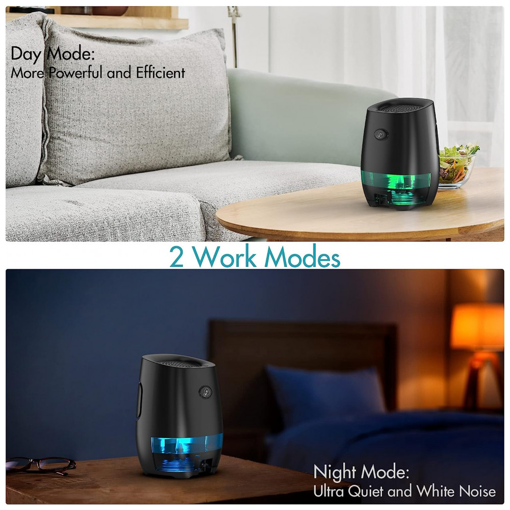 2 O desumidificador é ultra silencioso com 2 modos de trabalho para quarto, o nível de ruído é muito baixo 26dB e cria um ruído branco muito baixo no modo noturno para adormecer. O modo diurno é poderoso e eficiente para reduzir a umidade excessiva do ar, ajudá lo a respirar melhor, evitar que os ambientes cheirem a mofo e proteger móveis de madeira, roupas, papel de parede, etc.