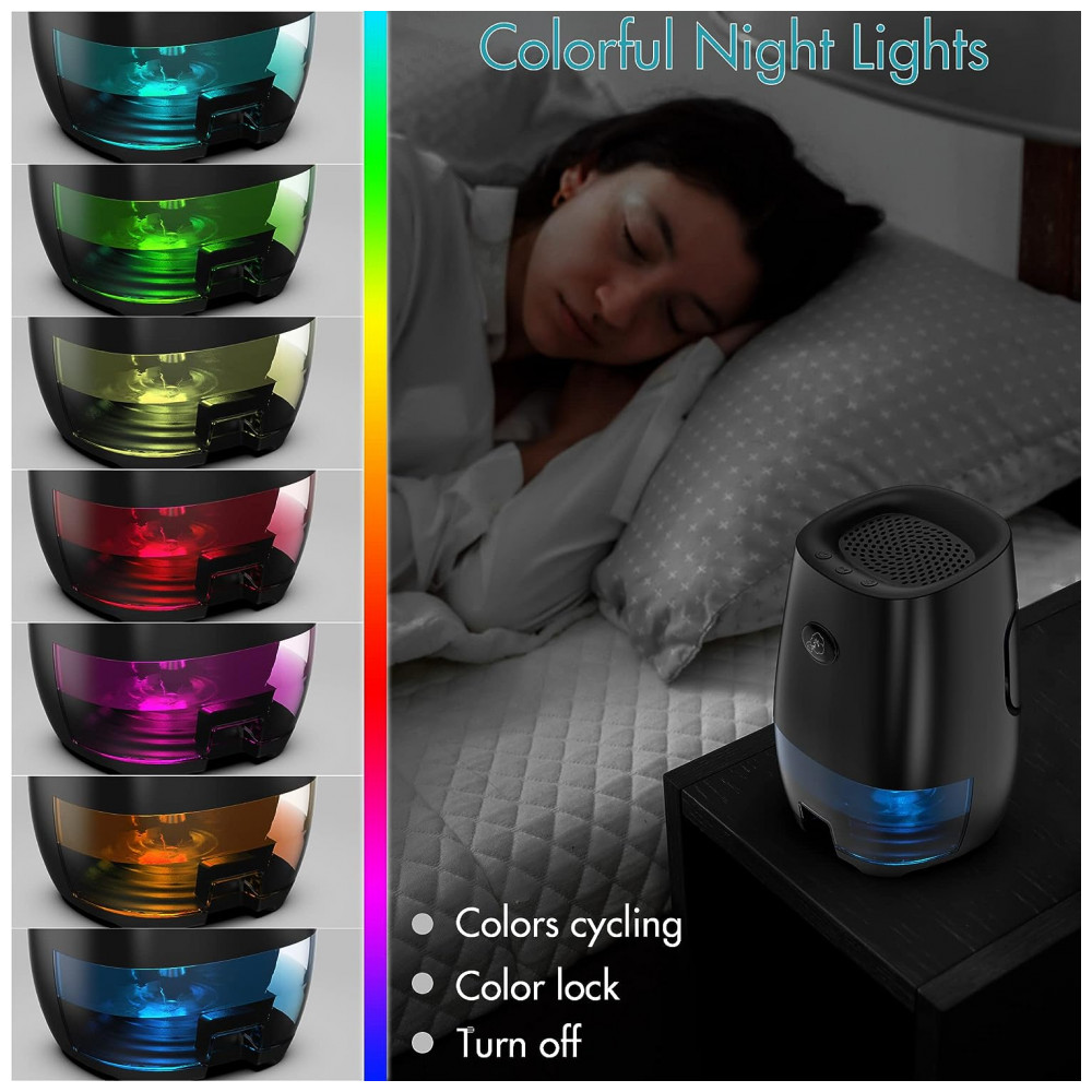 4 O desumidificador de armário possui luzes noturnas de 7 cores que podem mudar automaticamente em azul, roxo, vermelho, laranja, amarelo, verde, ciano alternadamente, é muito bom para pequenos espaços escuros e atua como uma luz noturna à noite. Pressione o botão de luz novamente para manter sua luz noturna favorita.
