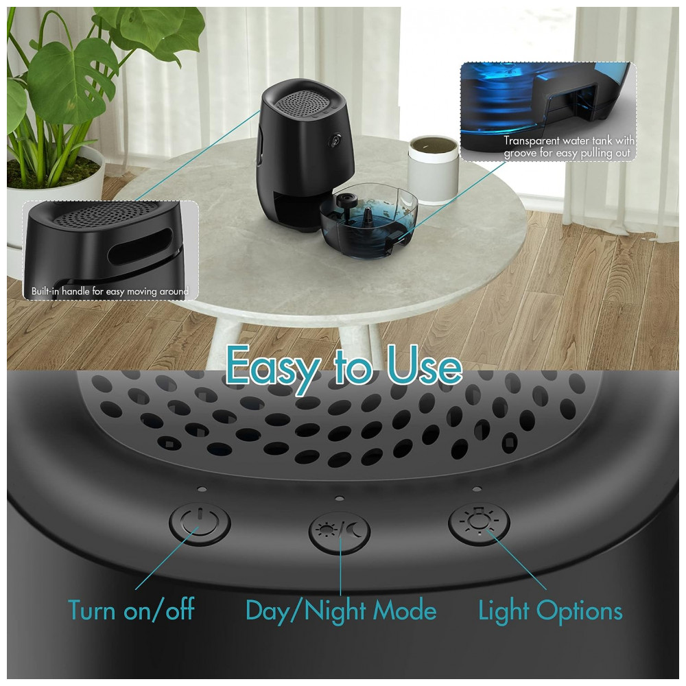 Desumidificador para Quarto 1L com Desligamento Automático Luz LED Ultra Silencioso e Área 26m2 AYAFATO Preto