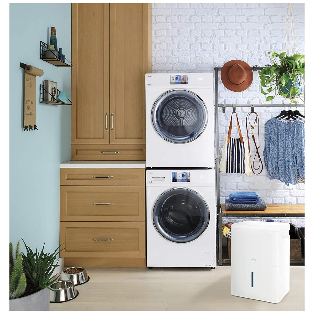 Desumidificador Portátil 35 Litros com Alarme de Balde Vazio Alerta de Filtro Limpo e Controle Digital LED Haier Branco