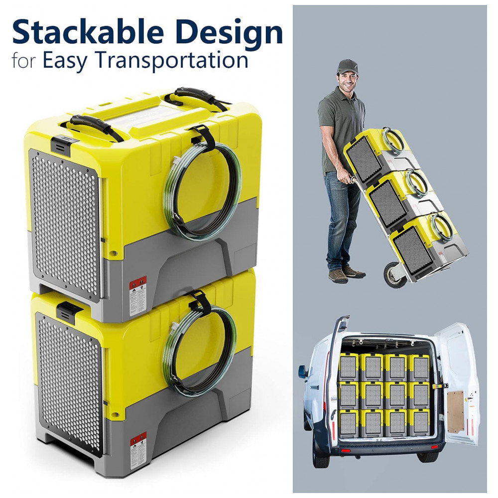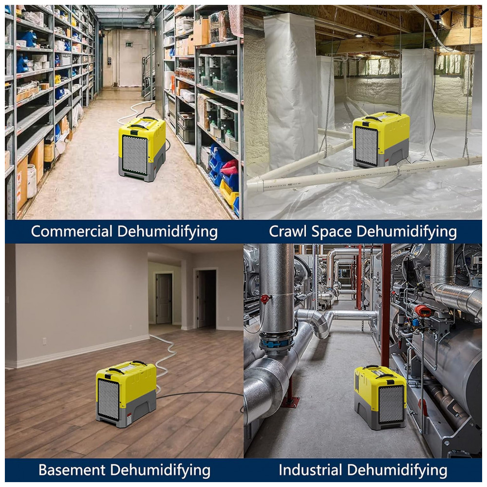 Este desumidificador LGR tem apenas 57,91 x 34,8 x 43,9 centímetros C x L x A, o design de economia de espaço com 2 alças de transporte na parte superior da carcaça facilita a posição em pequenas áreas confinadas, ótimo para espaços de rastreamento, porões apertados e outras áreas de difícil acesso.