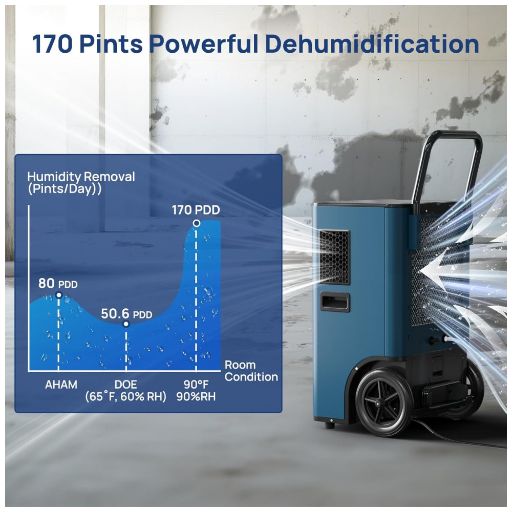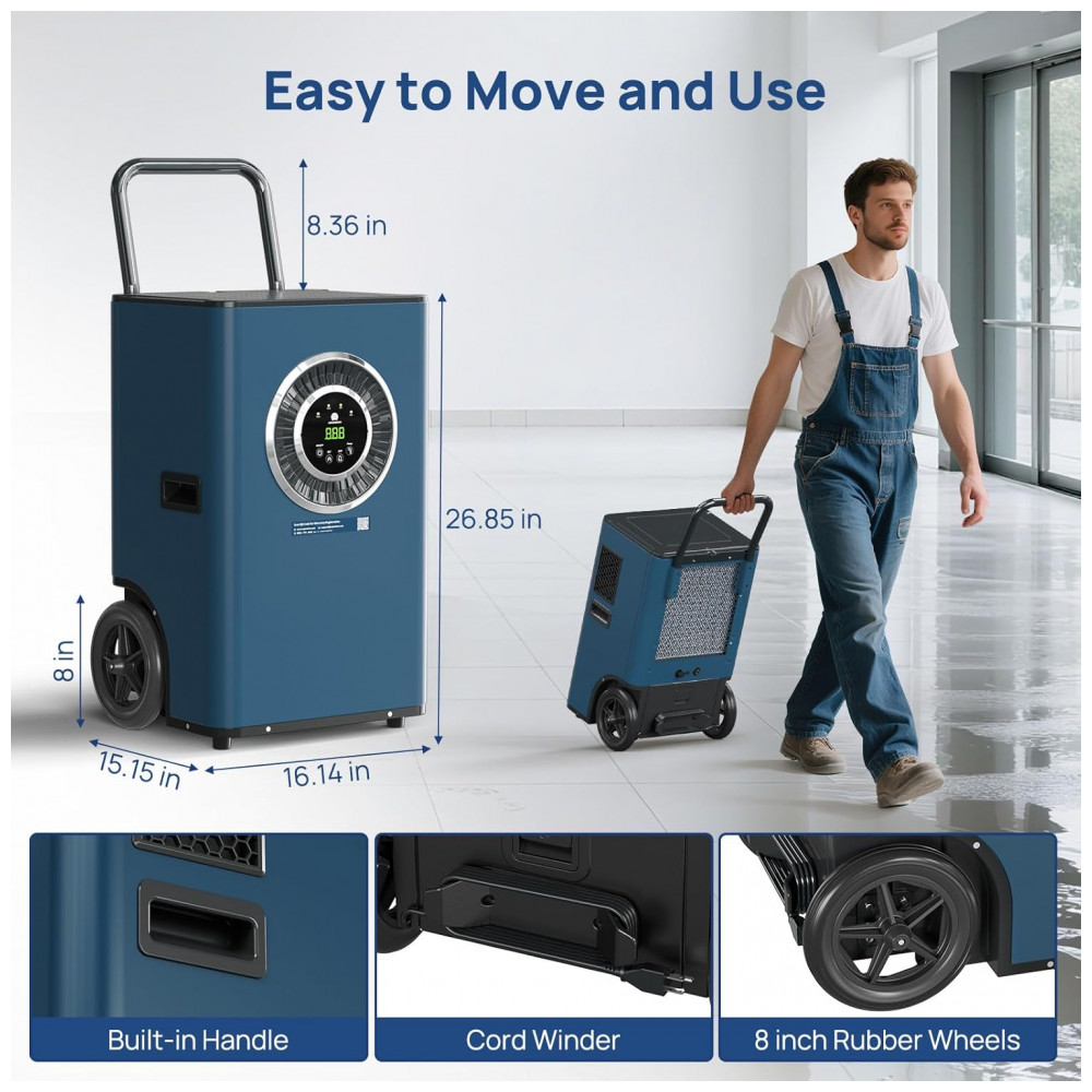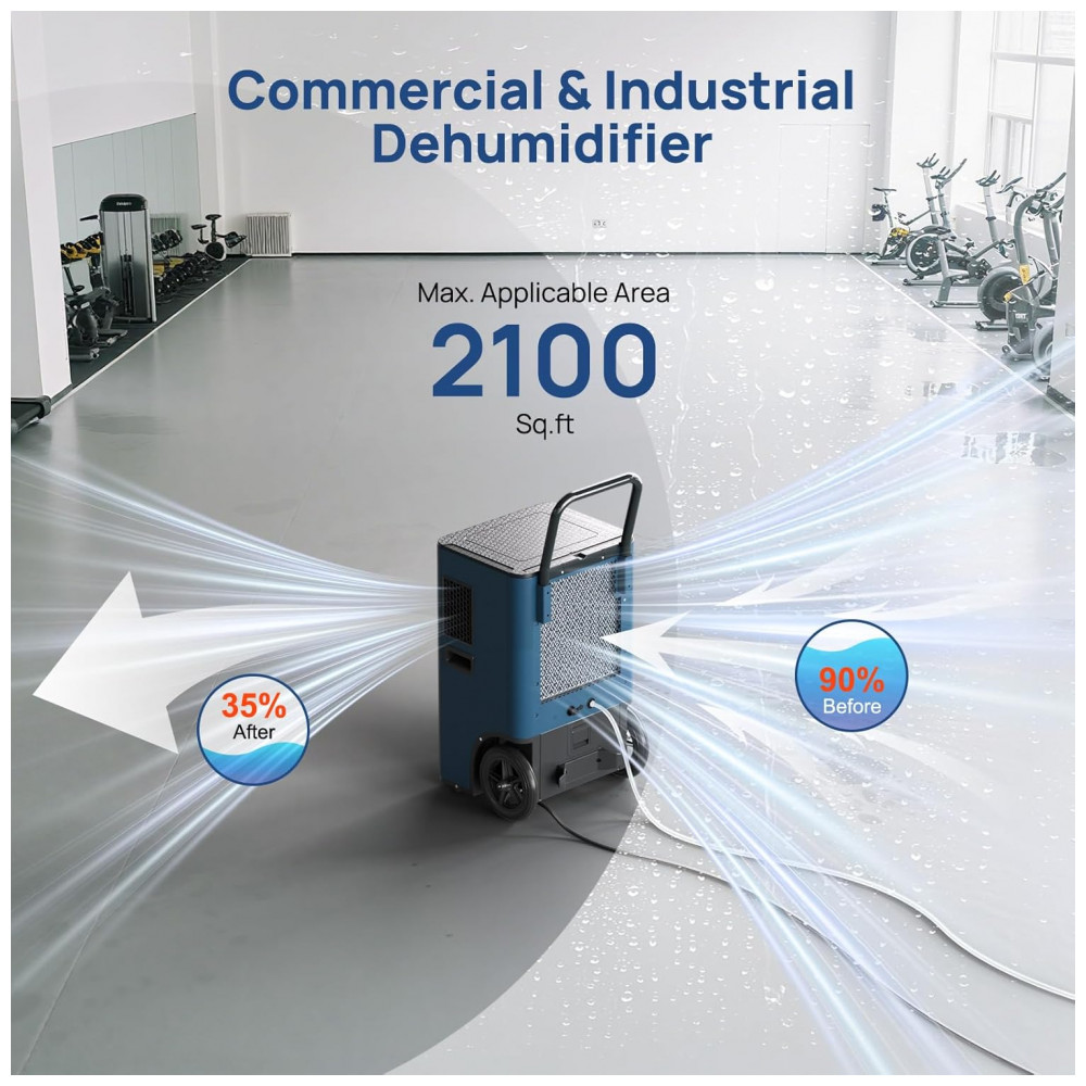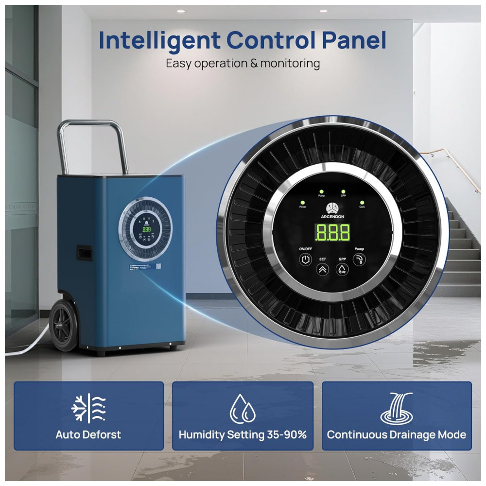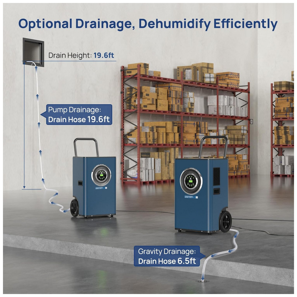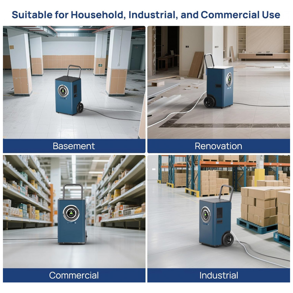Controle de Umidade Mais Eficiente: Com 80 litros de desumidificação em condições de saturação de 90F, 90 RH, 80 PDD no AHAM, 80F, 60 RH, o potente desumidificador comercial mantém a umidade de casas inteiras estável e confortável com um fluxo de ar forte de 210 CFM, ideal para secar eficientemente espaços grandes, reduzindo a umidade em áreas de até 2100 pés quadrados. Sob o modo RHGPP, ao pressionar ‘Configurar’, o desumidificador desumidificará continuamente seu espaço amplo. Perfeito para controle de umidade em casas inteiras. Drenagem por Bomba e Gravidade: O desumidificador ARGENDON possui uma bomba embutida que drena automaticamente a condensação, eliminando a necessidade de descarte manual de água. Com mangueira de drenagem, este desumidificador com bomba é capaz de bombear água vertical ou horizontalmente. Além disso, o desumidificador industrial também funciona por drenagem por gravidade com mangueira. Fácil de alternar o modo de drenagem para garagens, espaços de rastejamento, armazéns e reparos de danos por água. Tecnologia SLGR GPPSandidry Elite 80C: Utiliza tecnologia avançada SLGRmicrocanal de alumínio condensador, que possui uma maior área de superfície de troca de calor, permitindo transferência de calor mais rápida. Isso resulta em maior condensação nas bobinas e menos umidade retornando ao ar, aumentando a eficiência geral. Do ponto de vista dos usuários, o desumidificador ARGENDON com mangueira de drenagem para casa remove a umidade por GPP, um modo muito bom para controle de umidade em casas inteiras. Função de Descongelamento Automático e Reinício de Memória: O Sistema de Descongelamento Automático integrado dos desumidificadores para banheiro previne o acúmulo de gelo, garantindo desempenho contínuo mesmo em ambientes frios. Outra função importante é o reinício automático após quedas de energia, sem preocupações com desligamentos repentinos, o desumidificador operará como antes. Design Durável e Resistente: Com material de chapa metálica, o desumidificador ARGENDON Sandidry Elite 80C apresenta um design de alta qualidade. Comparado com máquinas de plástico, nosso desumidificador oferece durabilidade superior. Resistência a impactos de nível industrial, vida útil estendida de 3050 horas, proteção contra corrosão por 10 anos. O desumidificador para sousolos é equipado com alça de puxar, duas grandes rodas de 8 polegadas, facilitando o transporte e posicionamento. Possui também enrolador de cabo e um pequeno estojo na parte inferior para o cabo de alimentação e mangueiras de drenagem.