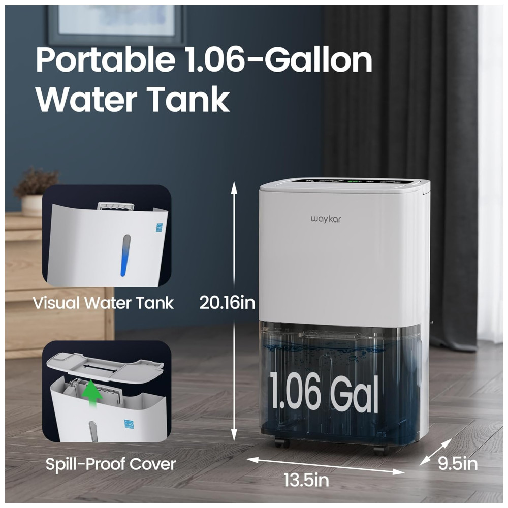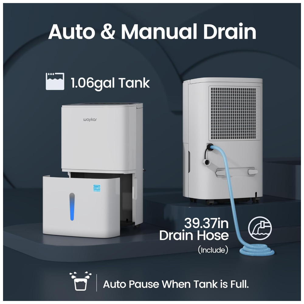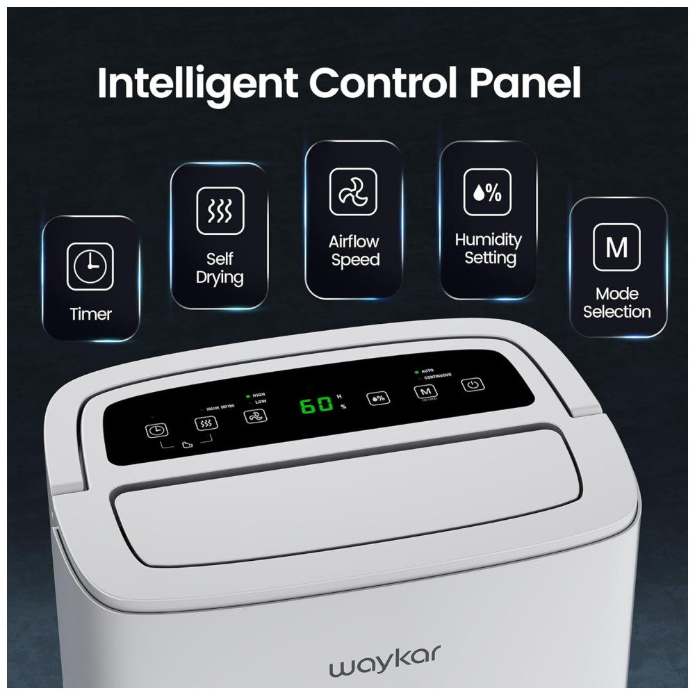 O desumidificador Waykar é capaz de remover até 37,85 Litros de umidade por dia em ambientes de até 464,5m². Com certificação Energy Star, é eficiente, econômico e ecologicamente correto. Possui controle inteligente, autodefrost, autosecagem e timer de 24 horas. Leve, silencioso e com design portátil, oferece operação tranquila e função de oscilação automática para distribuição uniforme do ar. Conta com duas opções de drenagem, filtro removível e funcionalidades que garantem uma experiência de desumidificação eficiente e amigável ao usuário.