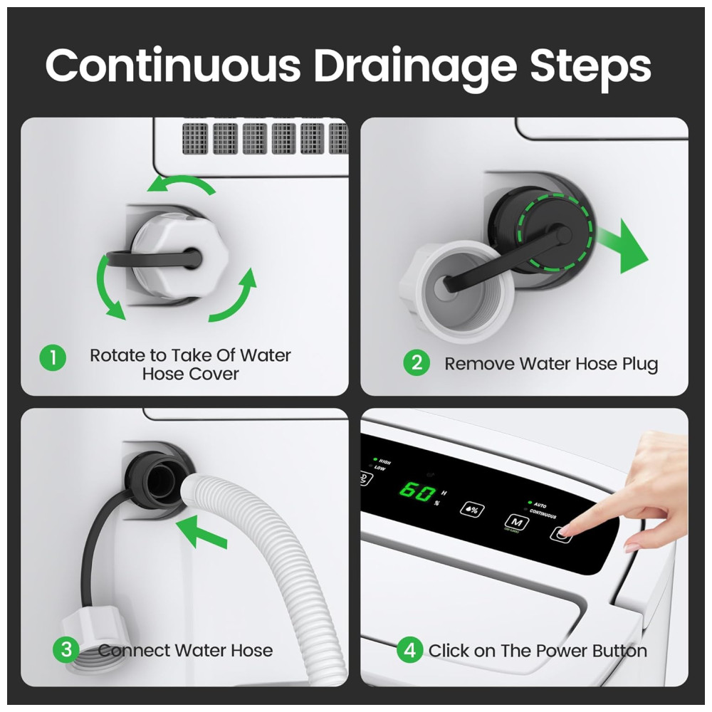 Componentes Inclusos: Desumidificador Waykar 80 Pints x 1; Mangueira de drenagem 39,37″ x 1; Manual do usuário x 1,