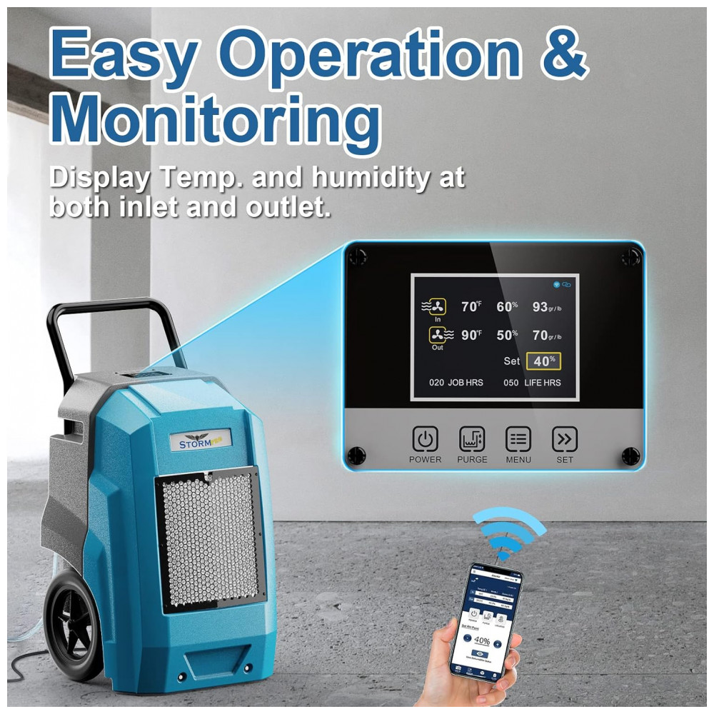 Desumidificador85 Litros com Conexão de Drenagem de Bomba e Controle por WiFi ALORAIR Azul