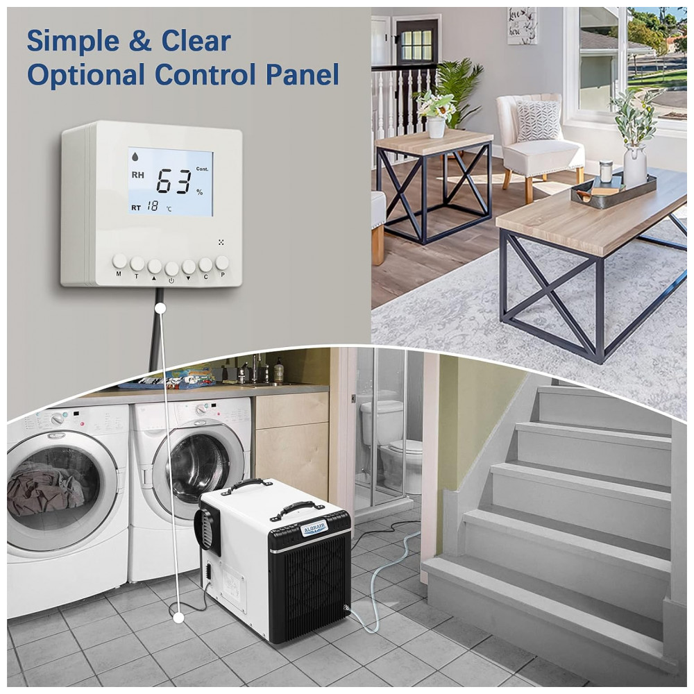 Bomba de condensado para serviço pesado: Ao remover grandes quantidades de umidade, a bomba de condensado mantém o desumidificador funcionando de maneira suave e eficiente, empurrando continuamente a água coletada para fora da área. Controle remoto opcional Este desumidificador profissional foi projetado com a função de monitoramento remoto, tornando esta unidade ideal para locais onde o sensoriamento e controle remoto são necessários. Também é uma boa opção para isolamento acústico e economia de espaço.