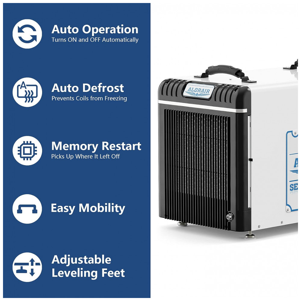 Desumidificador certificado Energy Star: remove a umidade de forma rápida e eficaz com menos energia do que os desumidificadores convencionais, sem aumentar sua conta de energia, economizando dinheiro. Será o melhor desumidificador de porão, espaço de rastreamento que você usará. Remova 42 litros por dia na condição AHAM, 93 litros na saturação, cobrindo até 241 metros quadrados, adequado para qualquer porão, espaço para rastejar, áreas de armazenamento, garagem, sala grande ou uso comercial.