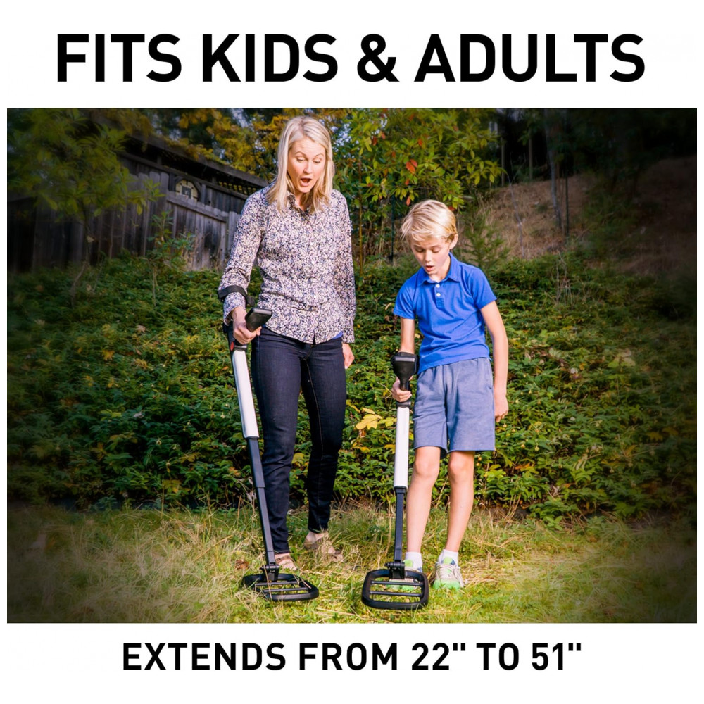 FÁCIL DE USAR Totalmente ajustável e leve, com um ecrã LCD fácil de entender, torna o Detector Pro acessível para todas as idades, tamanhos e níveis de habilidade, do iniciante ao avançado. Apenas desdobre e vá