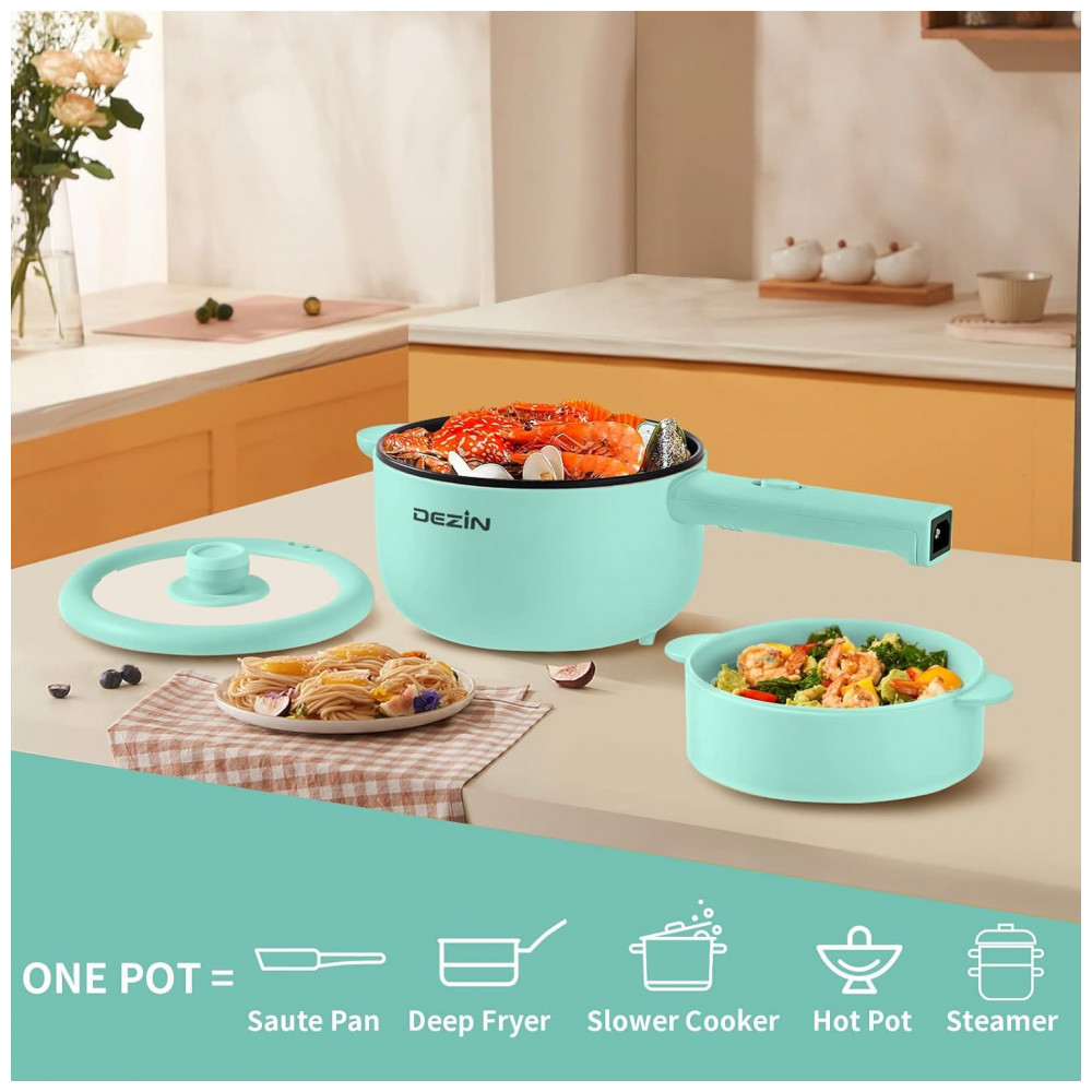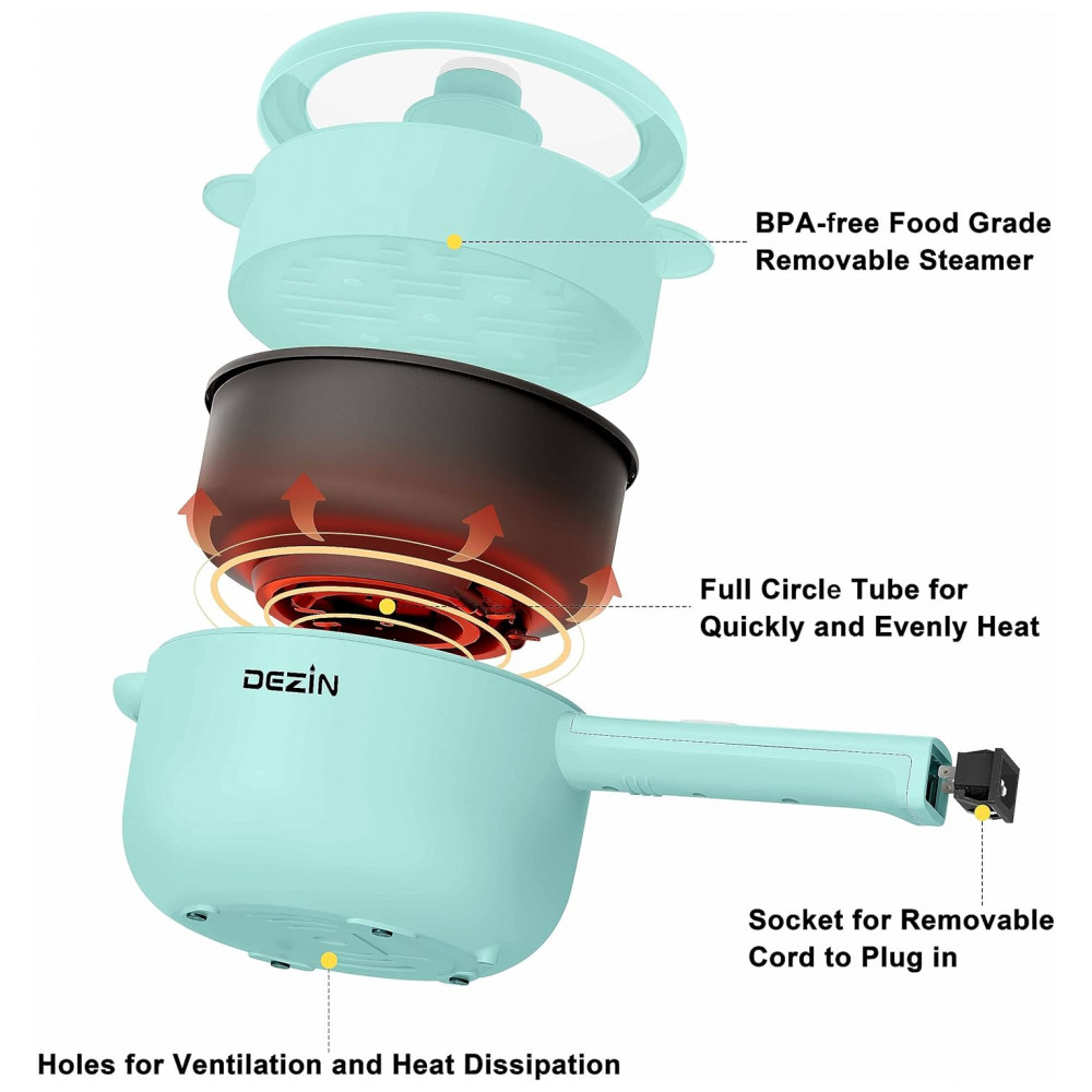 DEZIN Panela Elétrica 2L Antiaderente com Vaporizador Cozimento Rápido e Ajuste de Potência – Ideal para Dormitórios