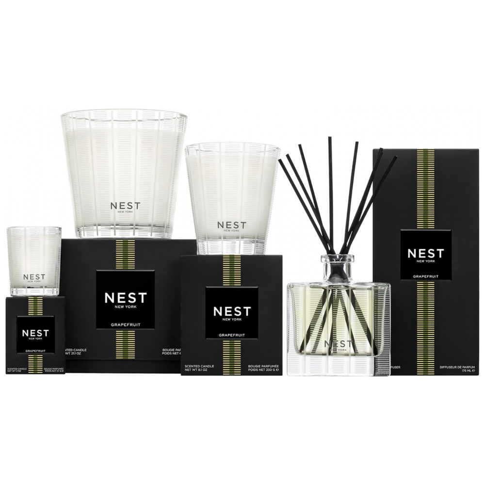 PACOTE Este pacote inclui um Difusor de Aroma de Grapefruit, um Refil de Líquido para Difusor de Varetas de Grapefruit e um Sabonete Líquido de Grapefruit. FRUTAS CÍTRICAS FRESCAS O pomelo rosa se mistura com notas verdes aquáticas, lírio do vale e flor de coentro nesta fragrância sofisticada e revigorante, que instantaneamente eleva os sentidos. DIFUSOR DE VARETAS Abrigado em um recipiente de vidro reutilizável e recarregável, nosso Difusor de Varetas eleva o cotidiano e entretenimento. Inclui oito varetas de vime totalmente naturais que proporcionam fragrância contínua e ininterrupta. REFIL DE LÍQUIDO PARA DIFUSOR O Refil de Líquido para Difusor permite que você reabasteça seu Difusor de Varetas vazio. Criado com as melhores essências de fragrância, libera lentamente um aroma delicioso de forma uniforme no ar por aproximadamente 90 dias. SABONETE LÍQUIDO Revigore seus sentidos com nosso Sabonete Líquido. Infundido com extratos de plantas naturais e antioxidantes, este sabonete líquido limpa e nutre a pele, deixando para trás um aroma requintado. PERFUME SEU MUNDO As coleções perfumadas para casa, perfume e cuidados com o corpo da NEST New York transformam o cotidiano ao misturar artísticamente notas do familiar, do exótico e do inesperado para uma experiência aromática sem igual.