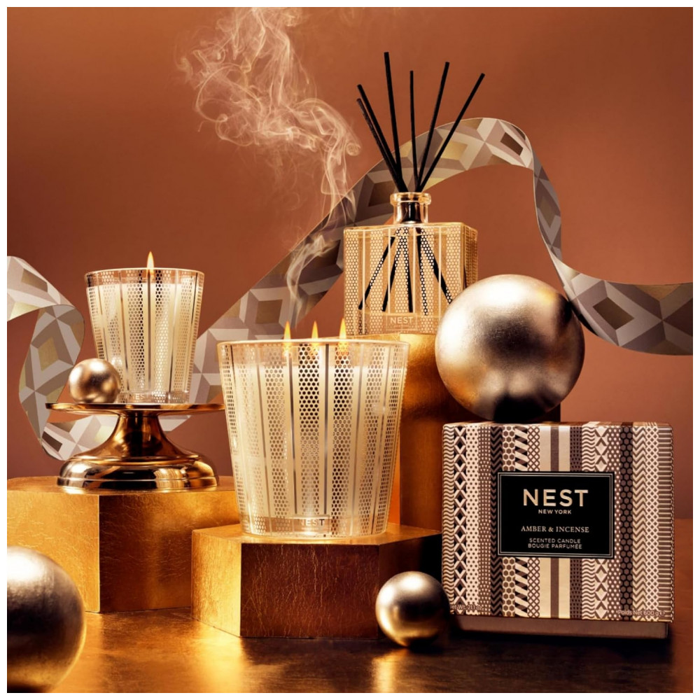 Difusor de Varetas NEST New York Âmbar e Incenso 1752 ml de Fragrância por até 90 Dias Suporte de Vidro Reutilizável e Recarregável inclui 8 Varetas