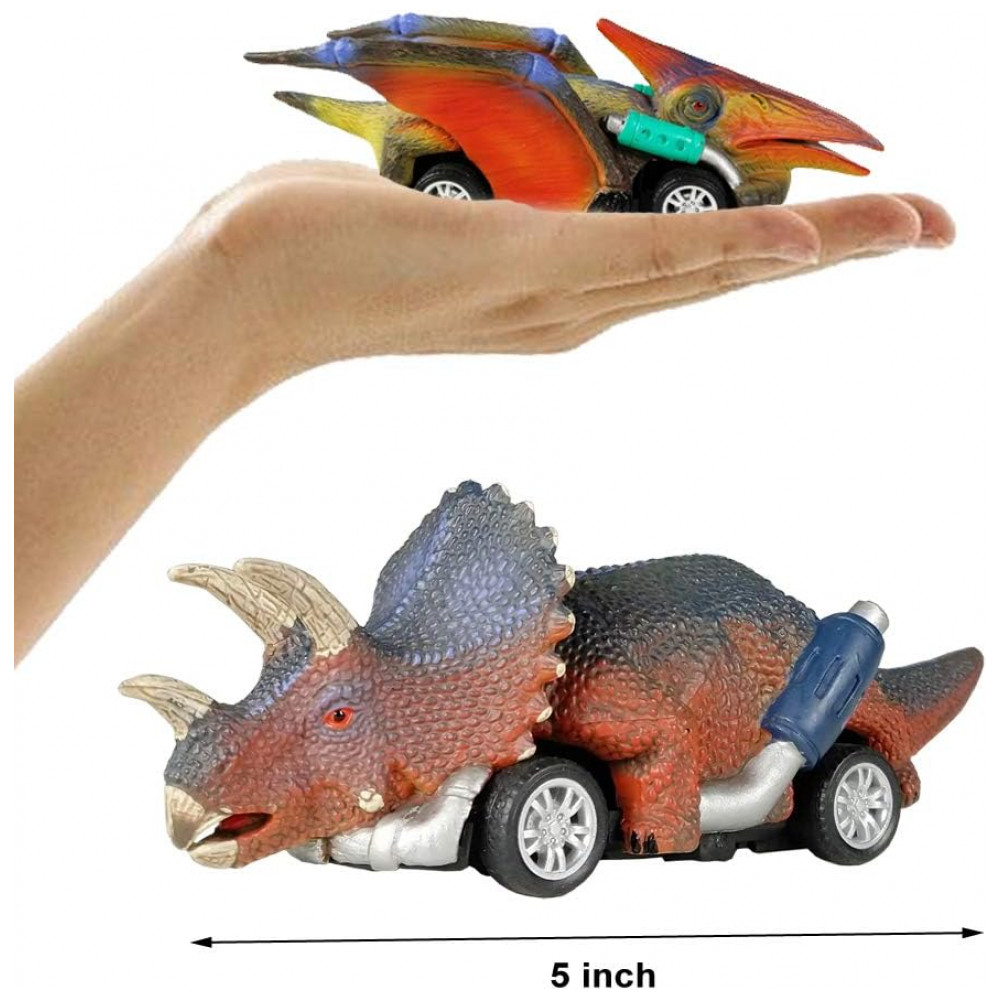 Desfrute deste conjunto de 6 carros de dinossauros cuidadosamente projetados, que são brinquedos perfeitos para meninos de 3 anos. Os brinquedos incluem TRex, Triceratops, Estegossauro, Anquilossauro, Pterossauro e Velociraptor. Com tamanho mini, aproximadamente 13 cm de comprimento, os carros de dinossauros são fáceis de segurar e brincar, ideais para crianças pequenas. Ao puxá-los para trás, os carros aceleram e são resistentes, proporcionando diversão e aprendizado sobre diferentes dinossauros. Ótimos como lembrancinhas de festa ou prêmio em aniversários temáticos de dinossauros, esses brinquedos ajudam as crianças a se encantarem com essas criaturas pré-históricas.