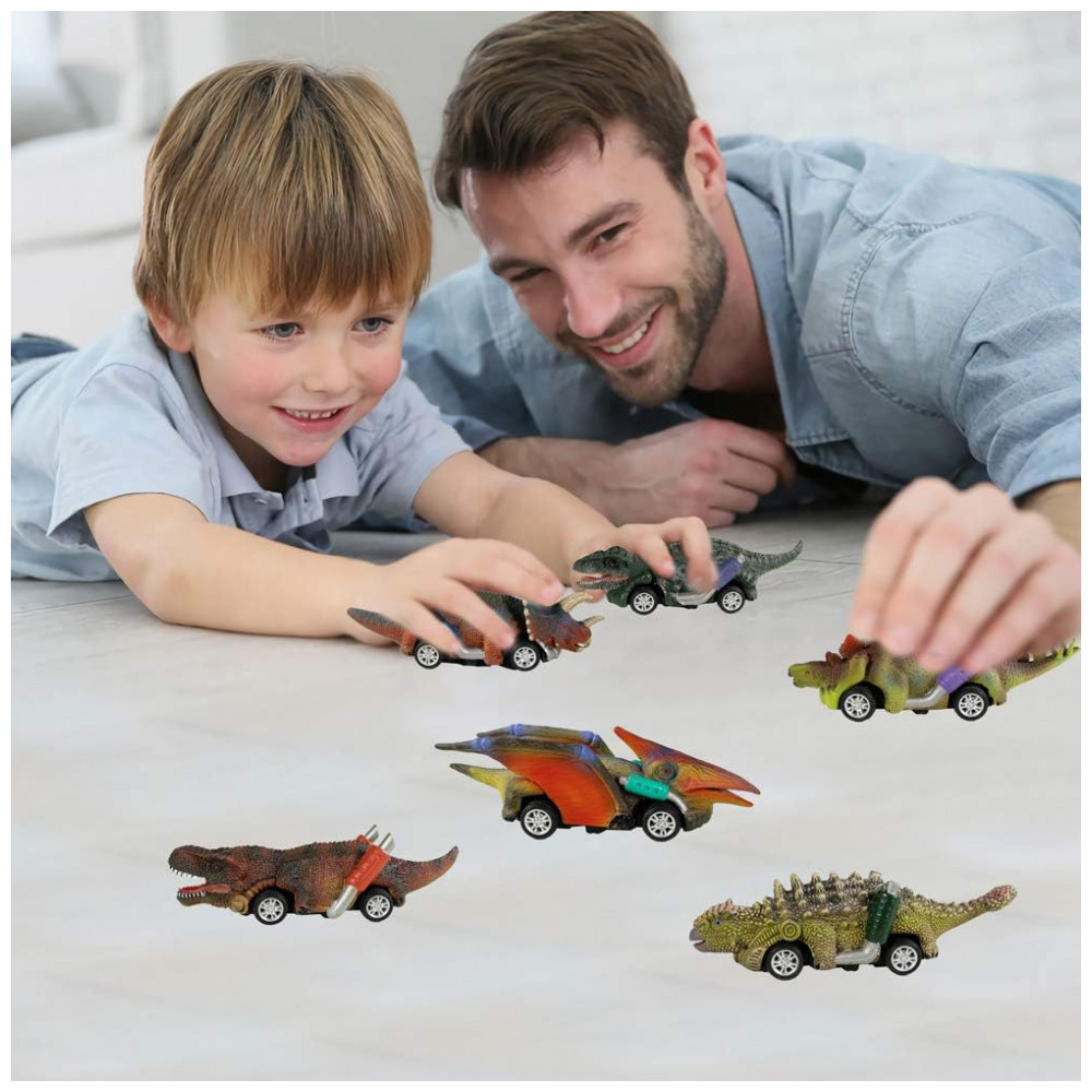 DINOBROS: Conjunto de 6 Carros de Dinossauros de Puxar Brinquedos Dino para Meninos e Meninas de 3 Anos e Mais Novos Mini Carros de Puxar Jogos de