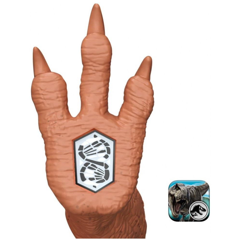 Integração digital: Código no pé para escanear no app Jurassic World Play (Android/iOS) e acessar coleção digital, AR e minijogos Ride ’N Rampage: Colossal Chase