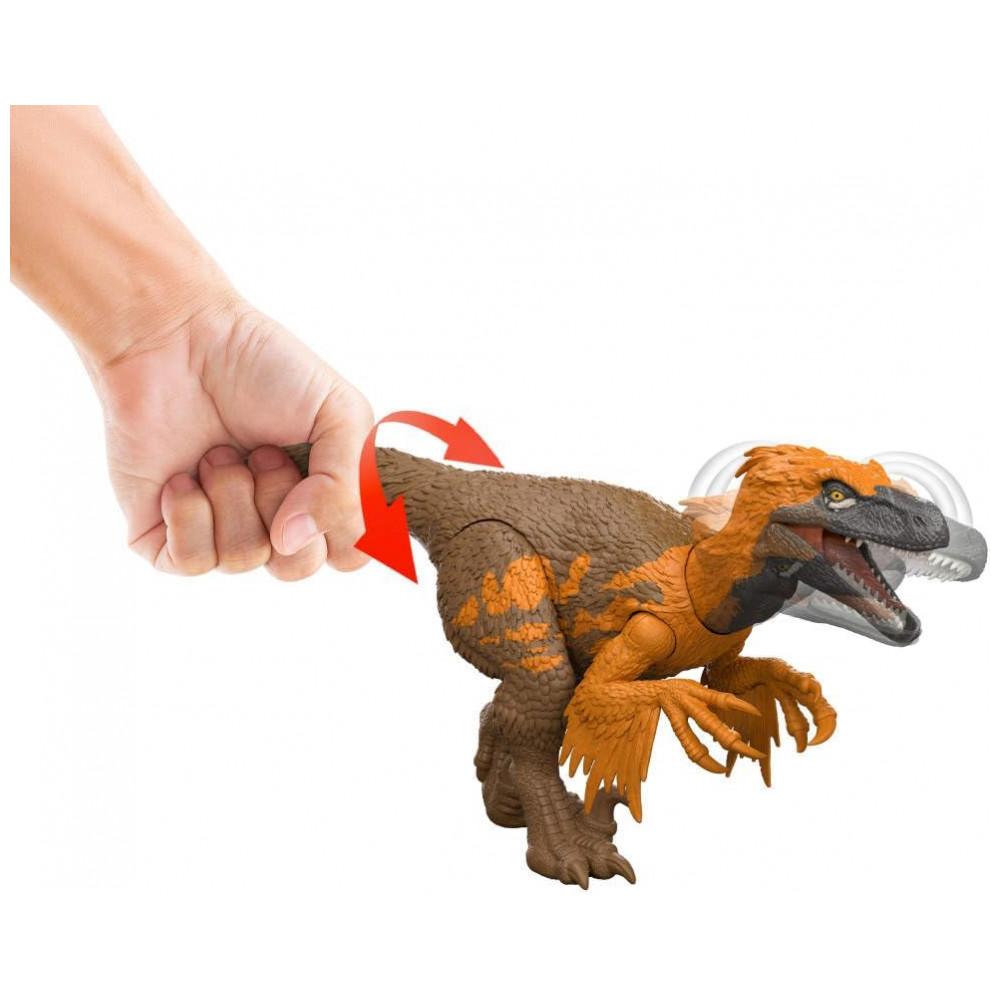 Dinossauro articulado Mattel Jurassic World Rebirth Wild Roar Utahraptor com ataque pela cauda rugido e integração digital via app