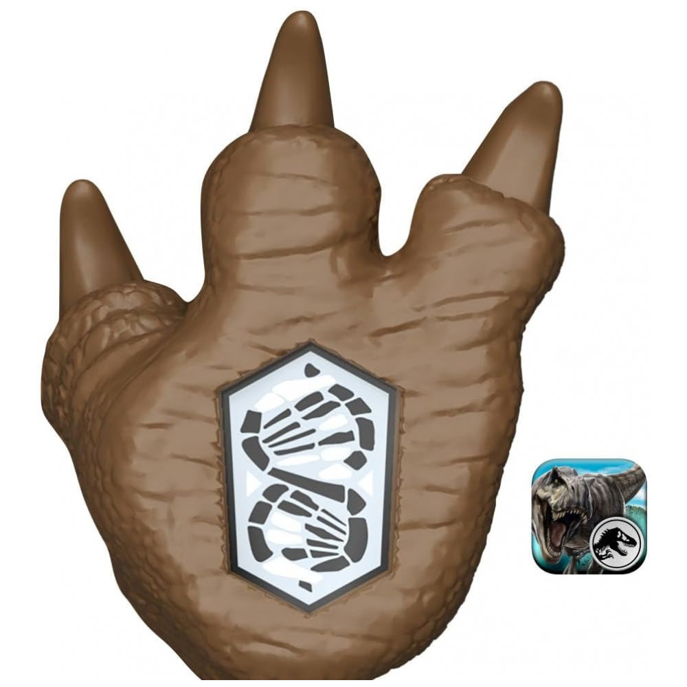 Integração digital: Código no pé para escanear no app Jurassic World Play (Android/iOS) e criar coleção digital com atividades em AR e minijogos Ride ’N Rampage: Colossal Chase