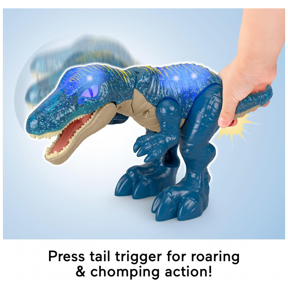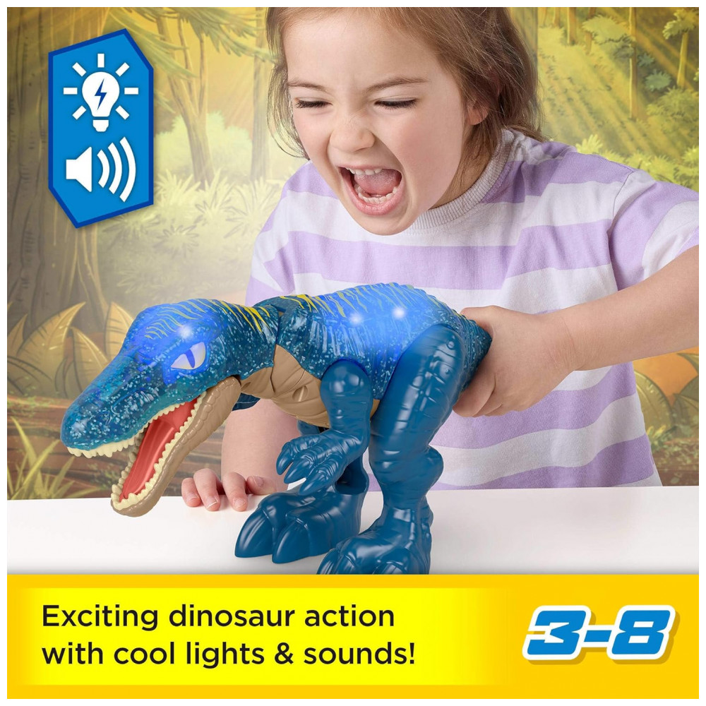 O dinossauro Fisher-Price Imaginext Jurassic World Growl & Glow Baryonyx é um brinquedo articulado desenvolvido para recriar cenas da franquia Jurassic World com foco em ação interativa para crianças em idade pré-escolar. A figura possui aproximadamente 26 cm de altura, com corpo robusto em plástico e detalhes texturizados que remetem à anatomia de um dinossauro carnívoro.