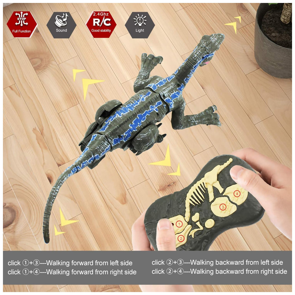 Este brinquedo de dinossauro RC é uma excelente opção para crianças que adoram dinossauros. Com 1 + 7 peças, ele é capaz de andar com flexibilidade interna e externa e reproduzir sons simulados, proporcionando uma experiência realista de Jurassic Journey. Além disso, o controle remoto permite que as crianças controlem o dinossauro para que ele realize funções de frente, para trás, esquerda e direita. O corpo e a cauda podem ser balançados de forma flexível, o que torna a brincadeira ainda mais divertida.
