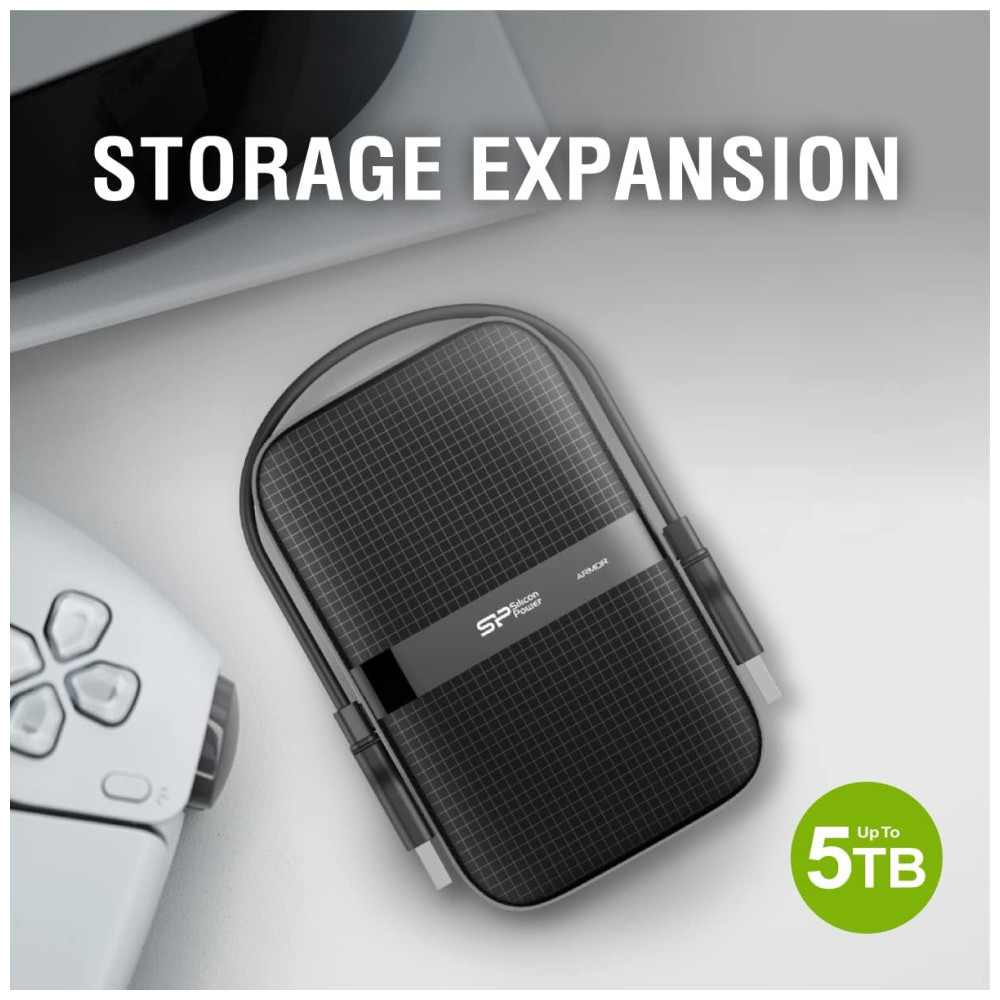 Disco Rígido Externo á prova de choque IPX4 2TB A60 USB 3.1 Gen1 para PC Mac Xbox e PS4 SP SILICON POWER SP020TBPHDA60S3KEU Preto