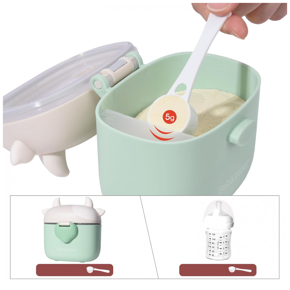 Dispenser de Fórmula Bebamour Vaquinha Verde Clara 3 Compartimentos com Colher 450ml
