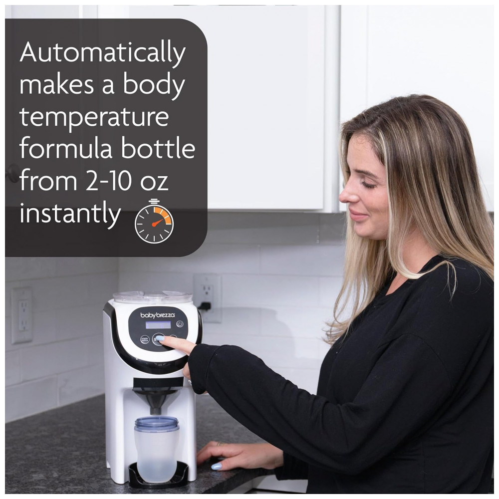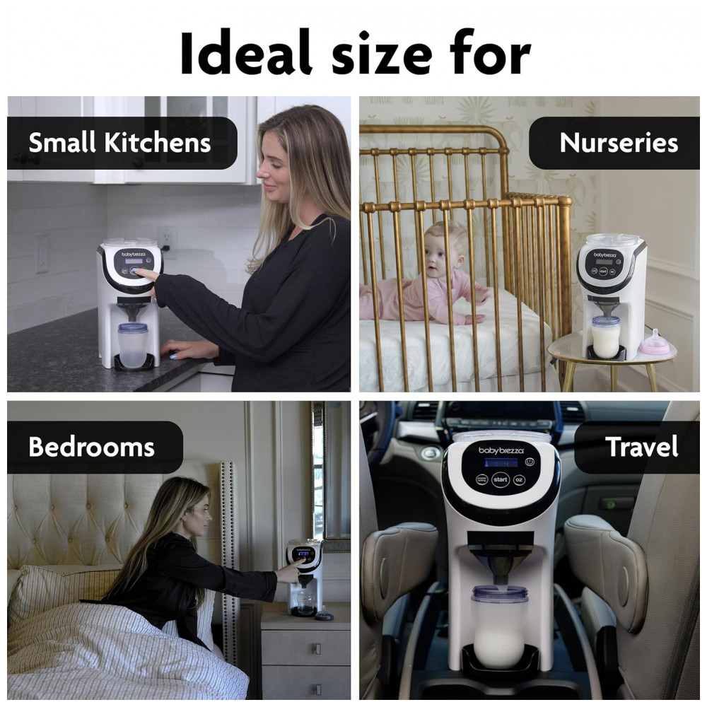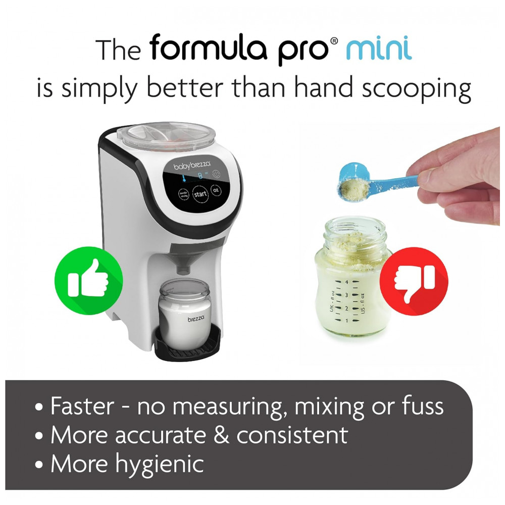 O Dispenser Fórmula Baby Brezza Formula Pro Mini é um aparelho portátil 30% menor que o modelo Advanced, com tecnologia de mistura para preparo de mamadeiras em segundos na temperatura ideal. Compatível com todas as marcas de fórmulas, dispensa porções precisas de 60 a 300 ml, ideal para viagens, criado-mudo, berçários ou cozinhas pequenas.