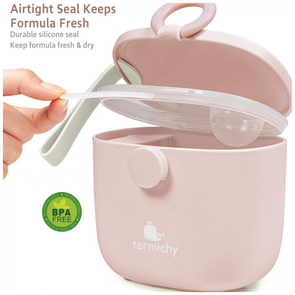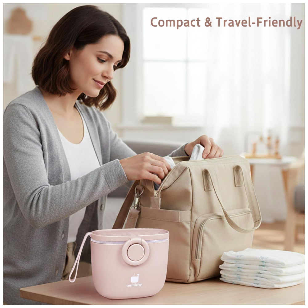 Dispenser Fórmula Bebê Termichy Rosa Claro Portátil com Alça e Colher 250g
