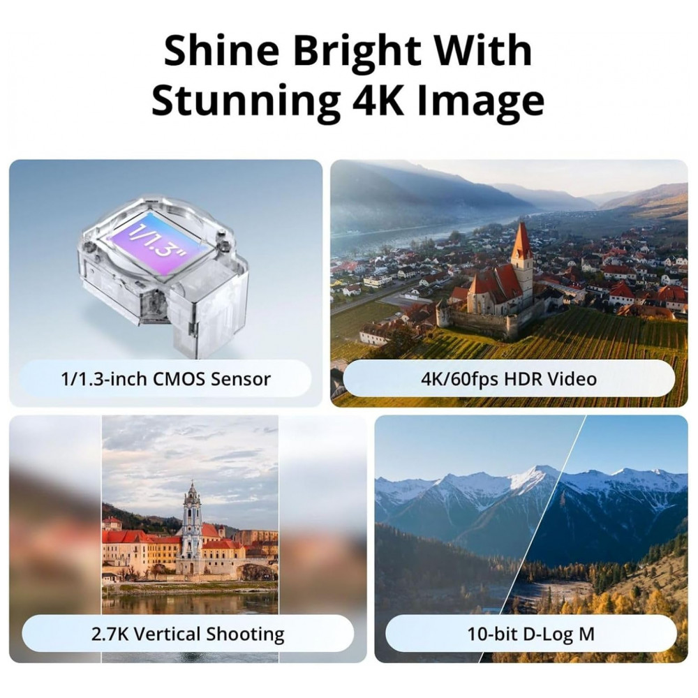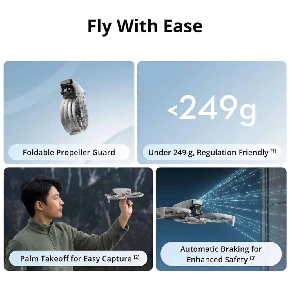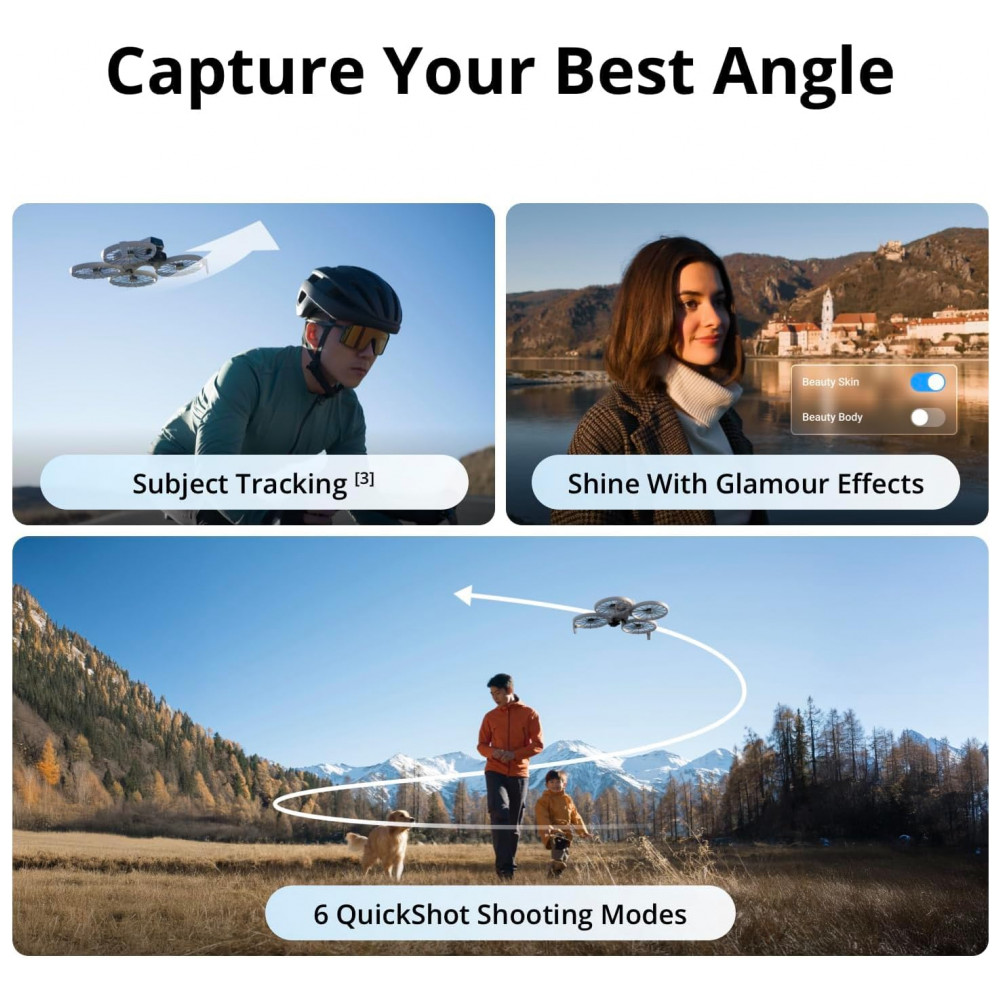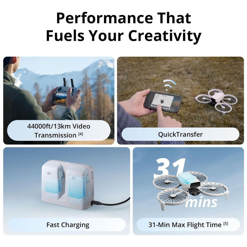 Recursos Especiais: Protetores de Hélice Integrados de Cobertura Total, Transmissão O4 com Alcance de até 13 Quilômetros, Design Portátil com Hélices Dobráveis, Rastreamento de Assuntos e Modos de Voo Automáticos, Até 31 Minutos de Tempo de Voo