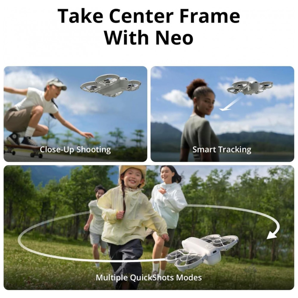 Desfrute de paisagens deslumbrantes ao ar livre e explore cenas internas impressionantes, garantindo que todos estejam incluídos na foto em grupo. Descubra uma nova perspectiva da vida cotidiana com o DJI Neo. O DJI Neo está disponível em três opções de compra. O combo padrão inclui o DJI Neo, uma bateria, par de protetores de hélice e muito mais. O Combo com Duas Baterias oferece mais flexibilidade de tempo de voo. Já o Combo com Três Baterias proporciona um tempo de voo estendido. Leve e adaptável às regulamentações, este drone com câmera para adultos pode ser até mais leve que seu celular, não necessita de registro da FAA e Remote ID. Basta jogar o Neo na mochila ou até mesmo no bolso. A decolagem e o pouso por palma, sem necessidade de controlador, tornam o Neo fácil e seguro de operar, ideal para levar a churrascos em família e caminhadas com amigos. O Rastreamento de Assunto QuickShots permite capturar vídeos impressionantes enquanto o DJI Neo inteligentemente segue você. Obtenha imagens profissionais de maneira fácil com oito modos criativos de QuickShots neste drone com câmera. Múltiplas opções de controle, diversão flexível. Voar com o Neo sem controlador ou com controle de voz ENCN, pelo aplicativo móvel ou RC. Capture um aniversário épico ou filme um piquenique em família, essas opções versáteis tornam fácil para todos experimentarem este drone para adultos. Vídeo Ultra Estabilizado em 4K, seja em uma trilha, praticando caiaque ou simplesmente caminhando em um parque com vento, este drone com câmera para adultos em 4K utiliza tecnologia de estabilização da DJI, resistência ao vento de nível 4 e 4K UHD para garantir imagens suaves e de alta qualidade. Protetores de Hélice de Cobertura Total, para os nervosos voadores, relaxem! Mergulhe dinamicamente ao redor de sua casa e entre galhos de árvores sem preocupações. O DJI Neo padrão vem com uma bateria, protetores de hélice e muito mais, pronto para usar sem controlador ou com um smartphone.