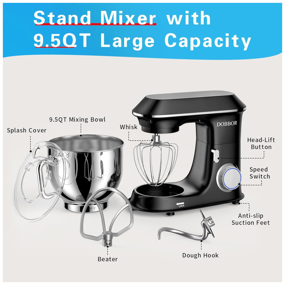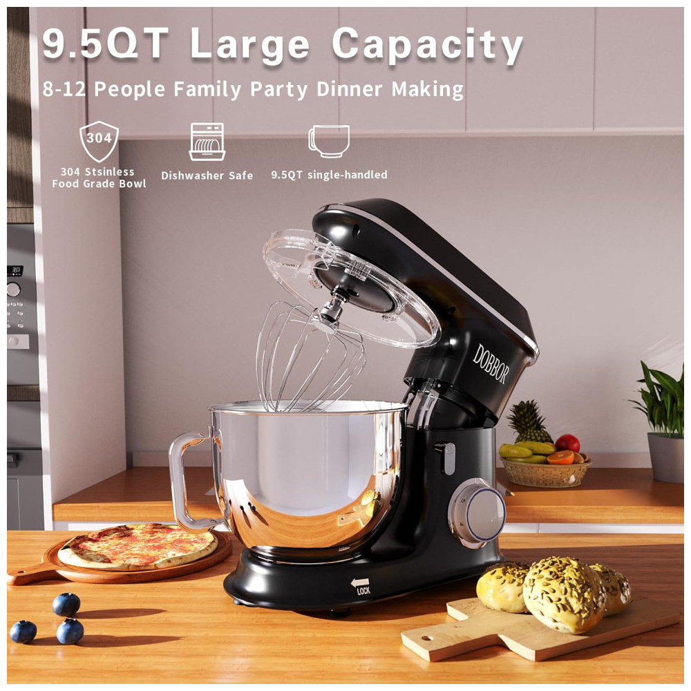 O misturador DOBBOR vem com uma tigela de 8,5 litros que oferece capacidade suficiente para uso familiar. Além disso, a tigela de mistura de aço inoxidável e a caixa de ABS são duráveis e fáceis de limpar.