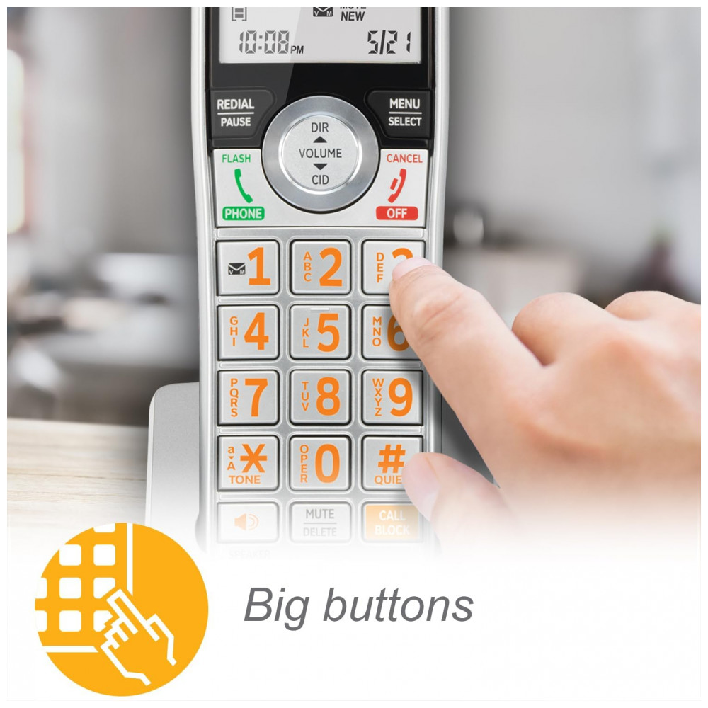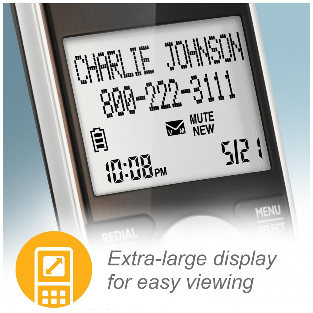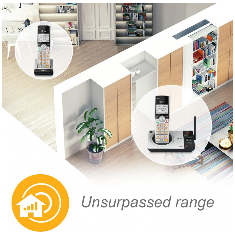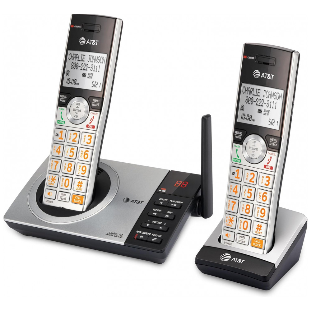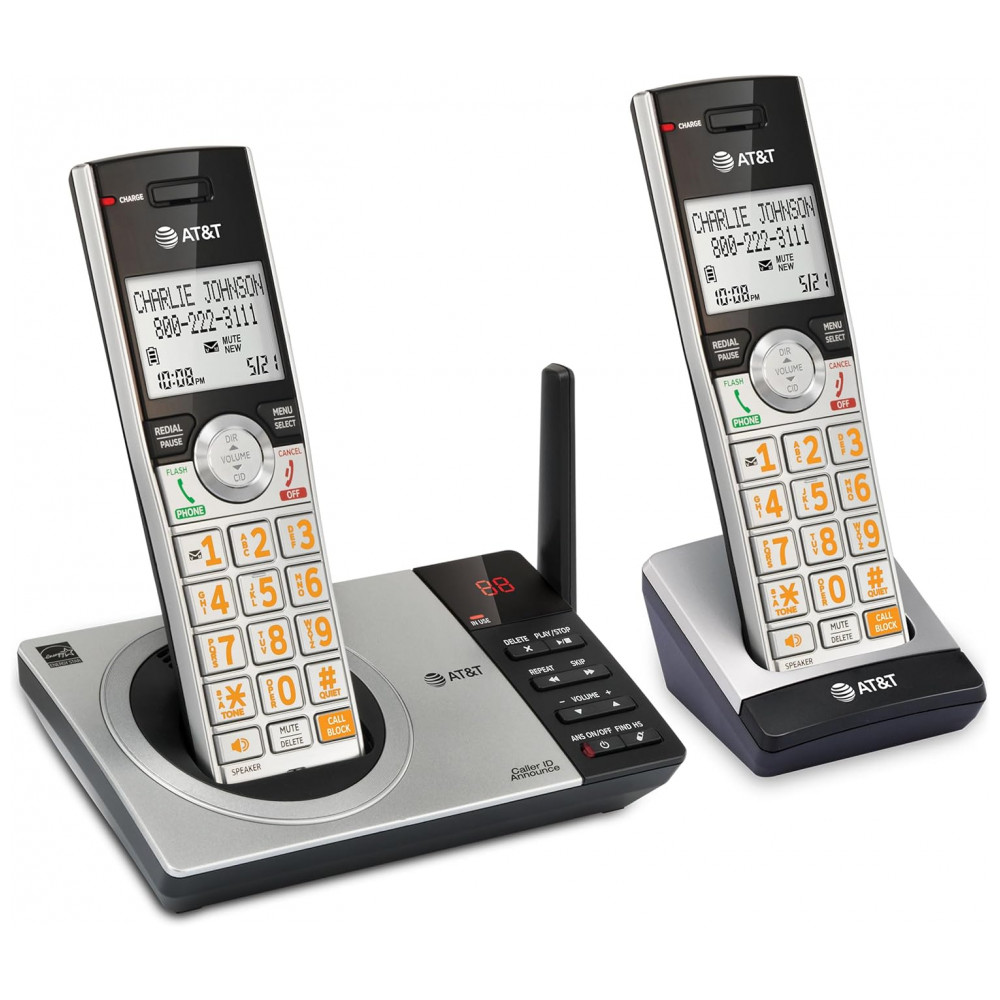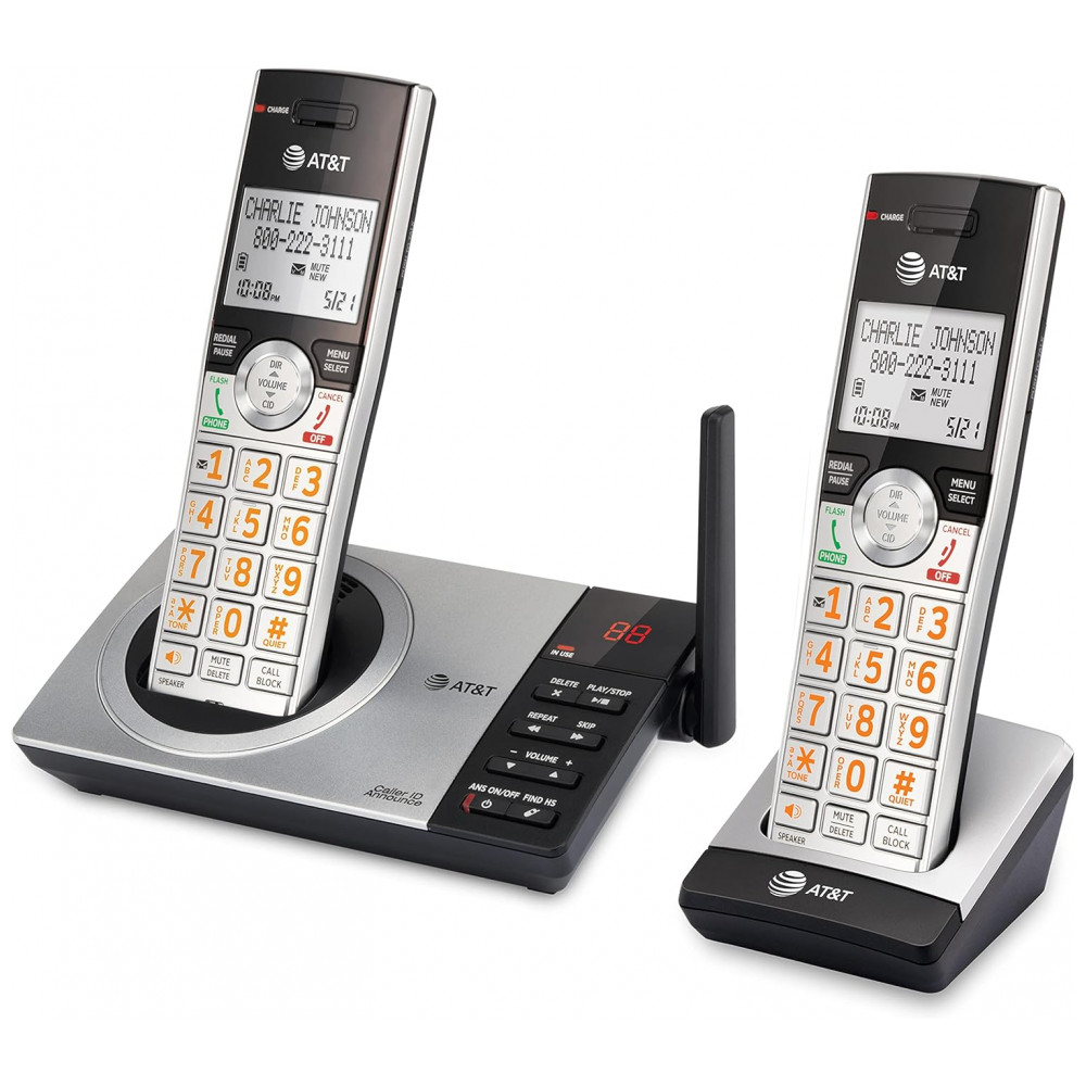 Dois 2Telefones Sem Fio Expansível Sistema de Atendimento Bloqueador de Chamadas inteligente prateado ATT CL82207 Prateado