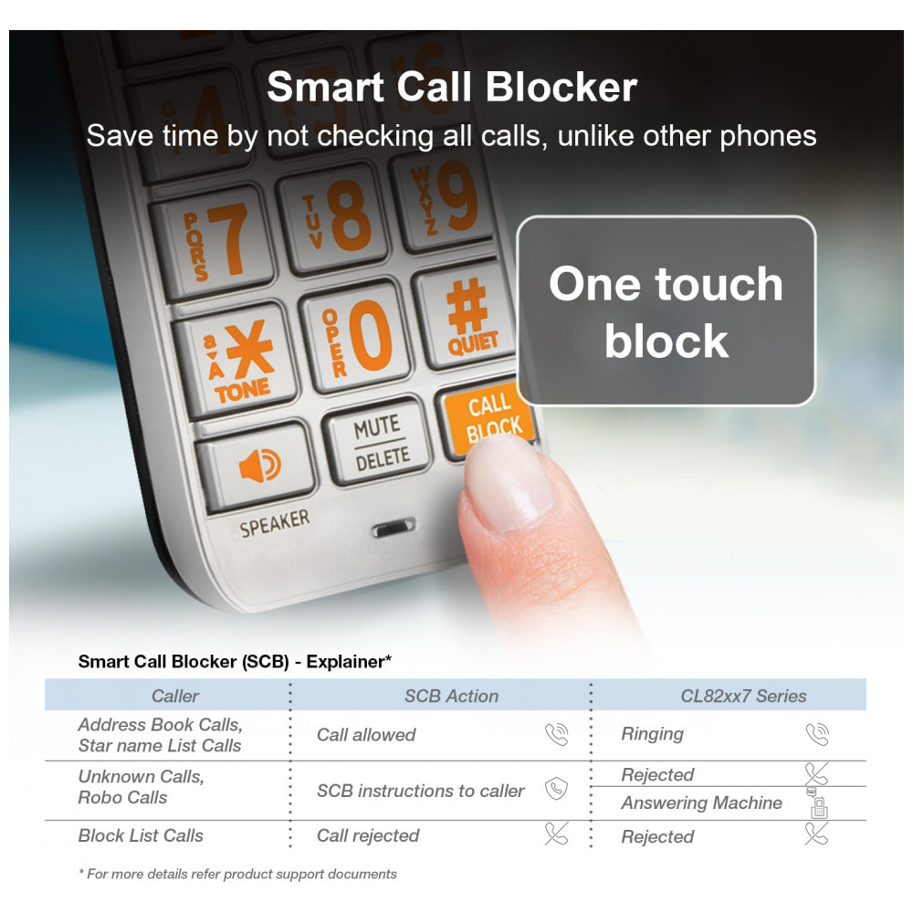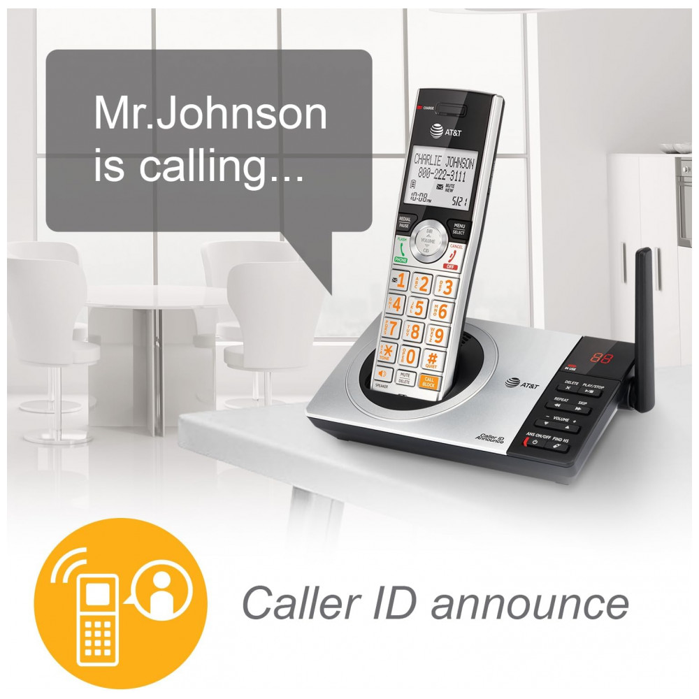 Veja, ouça e faça chamadas com facilidade com o deck AT T CL82207 expansível 6.0 Sistema de atendimento com bloqueio de chamadas inteligentes e alcance insuperável. Com este sistema, você pode dizer adeus às chamadas indesejadas, acordando o no meio da noite ou atando a linha. As chamadas Rob são automaticamente bloqueadas, desde a primeira vez. Você também pode excluir permanentemente qualquer número desejado com um toque. O sistema AT T CL82207 Answering é um sistema sem fio confiável que oferece áudio de longo alcance e recursos extras, como o anúncio de identificação de chamadas e o Push to Talk para chamadas sem esforço de qualquer ambiente da sua casa. Além disso, os botões grandes e a tela extra grande facilitam a visualização e a discagem de chamadas. Graças ao sistema de atendimento digital incorporado, pode gravar até 22 minutos de mensagens recebidas, anúncios de saída e notas para ajudá lo a se manter organizado