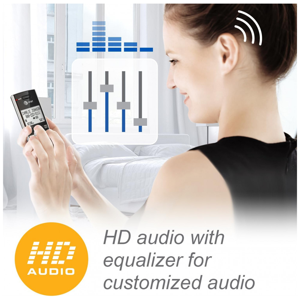 O sistema de atendimento digital com guia de voz grava até 22 minutos Áudio HD com equalizador para áudio personalizado Teclado retroiluminado e LCD de alto contraste Identificação de chamadas registra mais de 50 nomes e números Bloqueador de chamadas inteligente economiza até 1 000 nomes e números