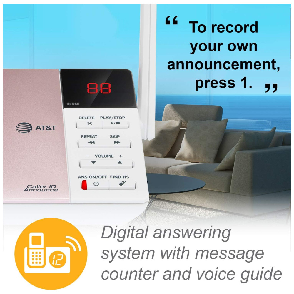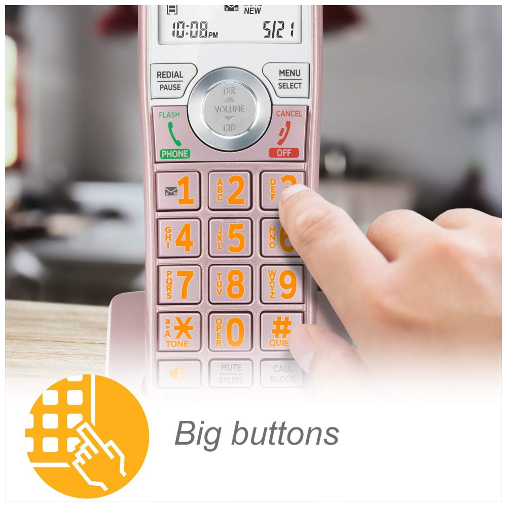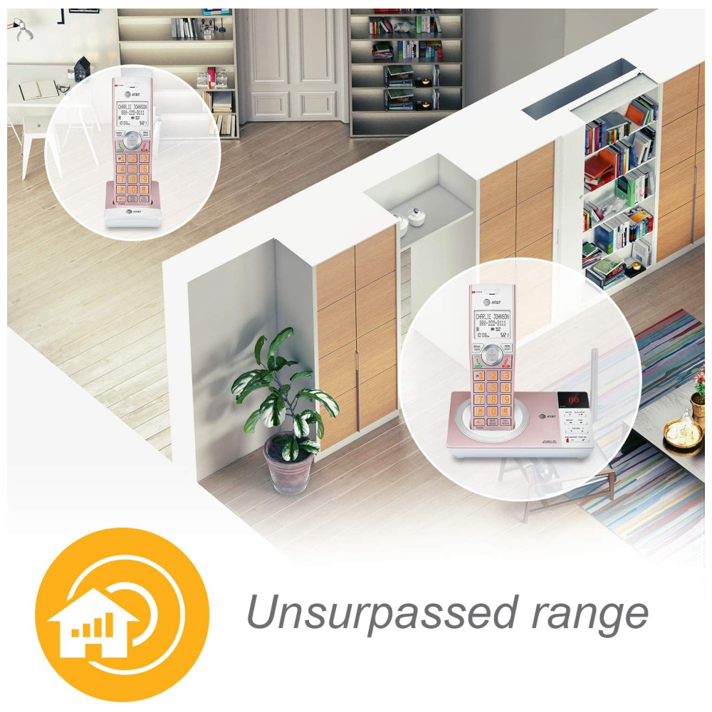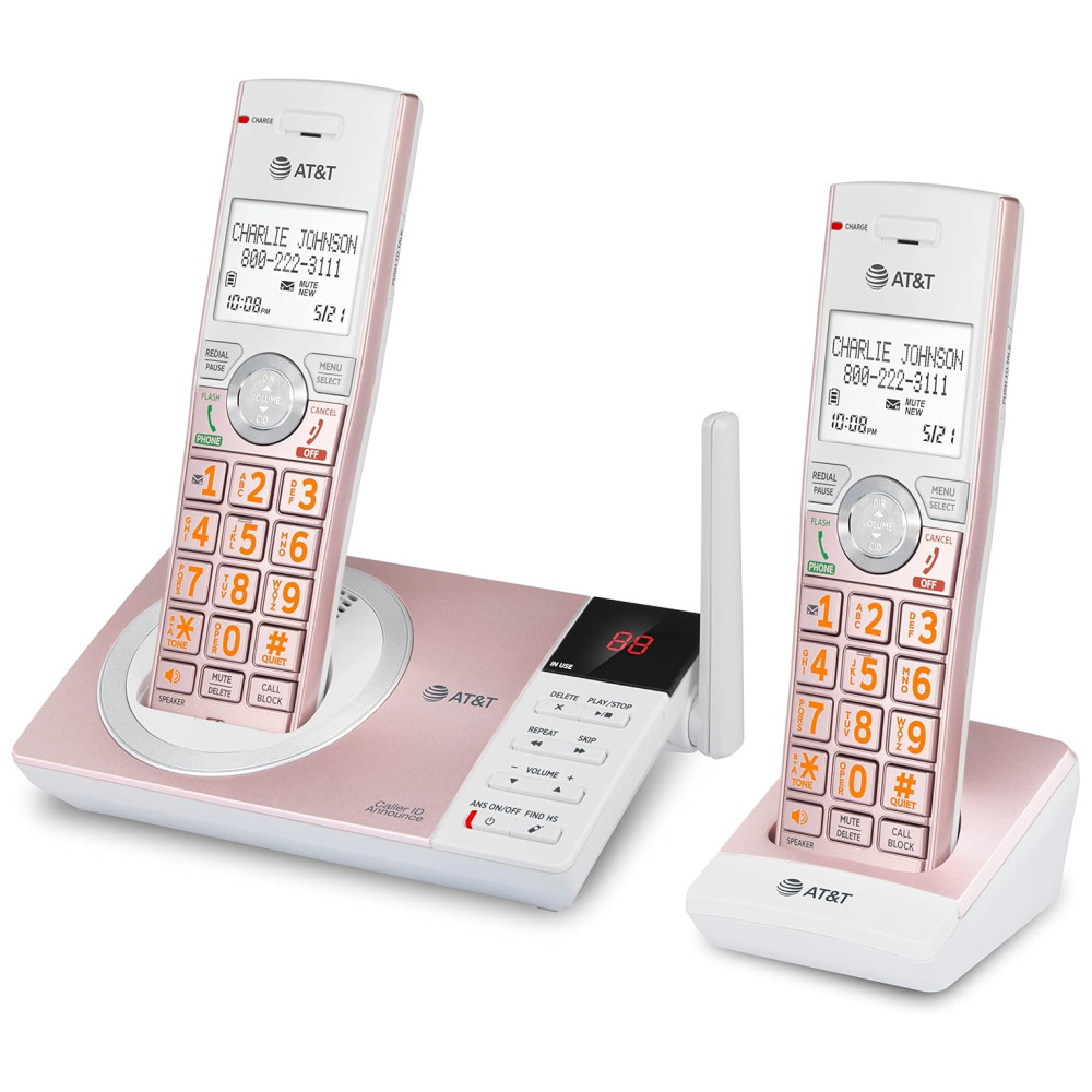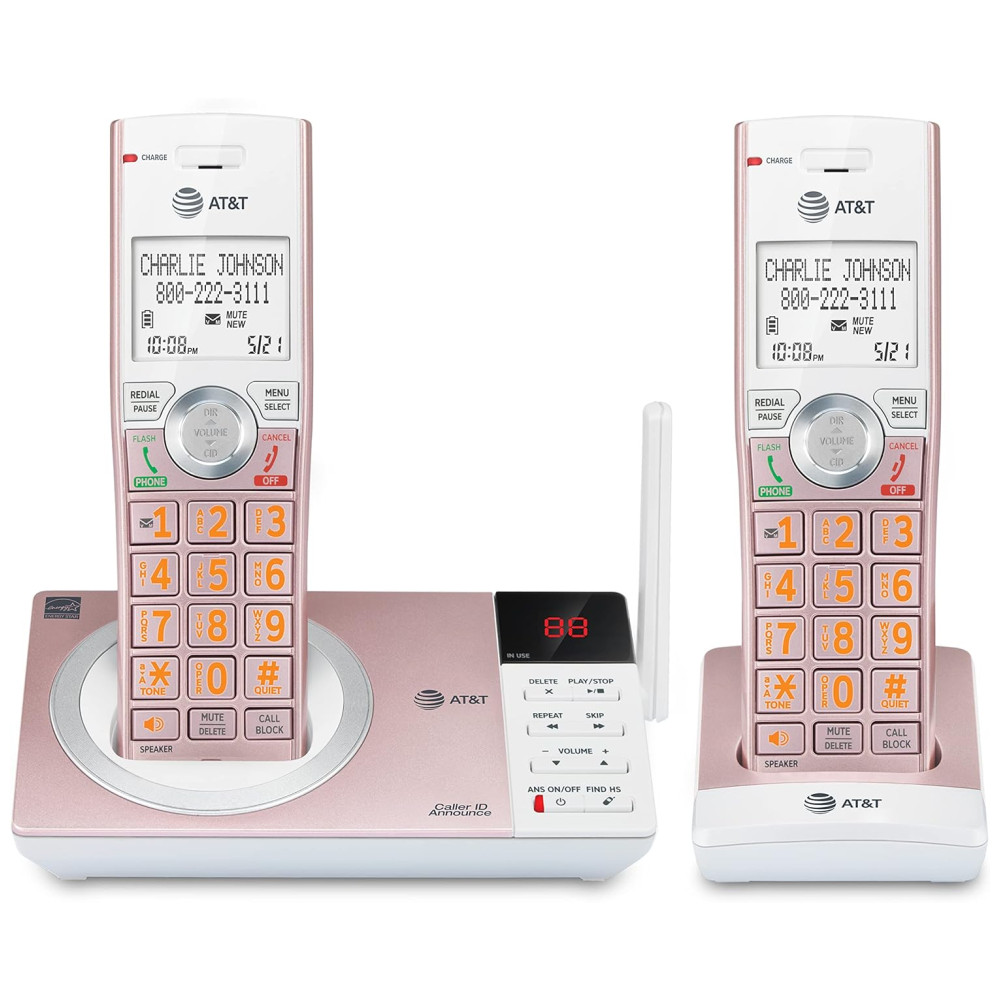 Dois Telefones Sem Fio Expansível Sistema de Atendimento Bloqueador de Chamada inteligente ATT CL82257 Rosa claro