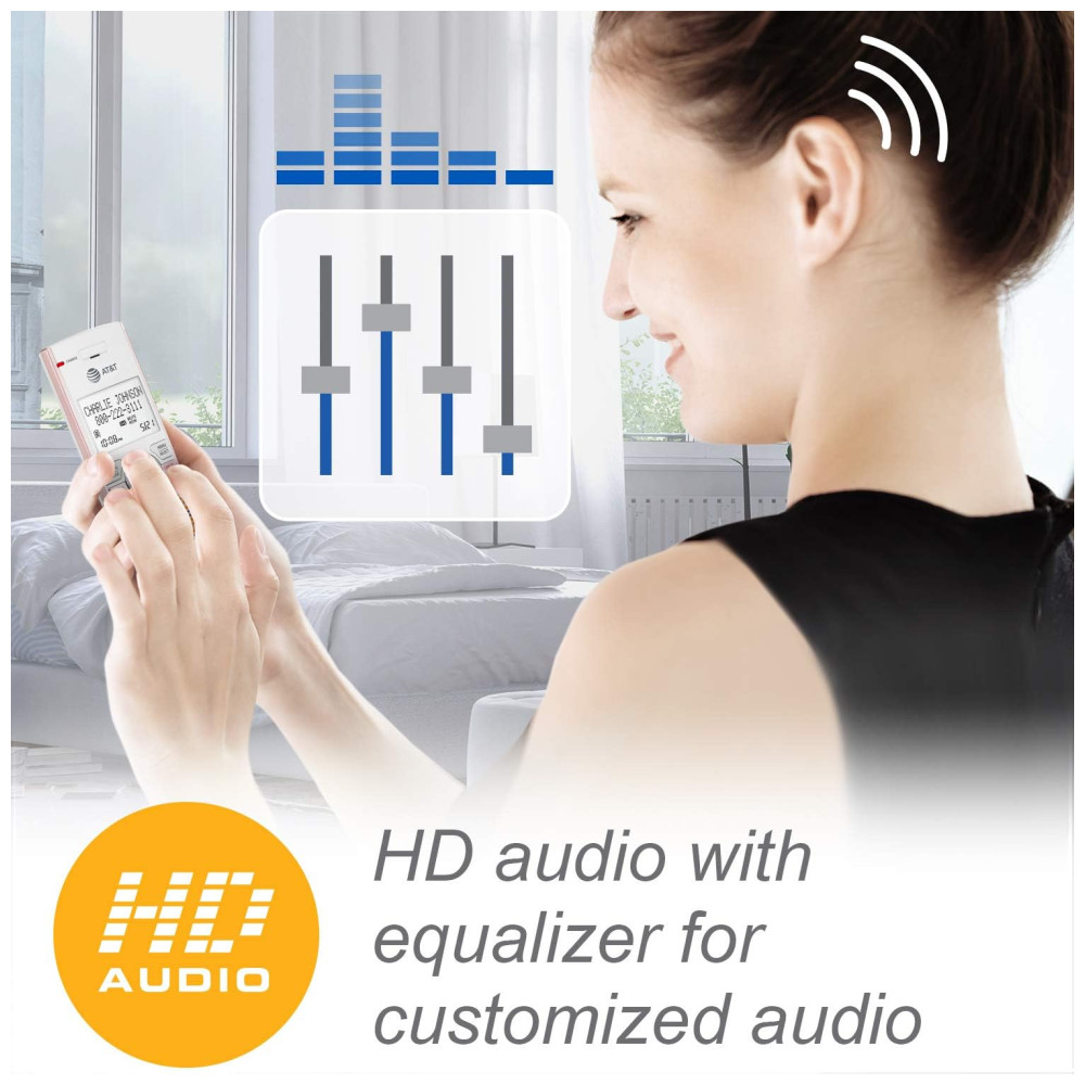 O sistema Digital Answering com guia de voz grava até 22 minutos Áudio HD com equalizador para áudio personalizado Teclado retroiluminado e LCD de alto contraste Identificação de chamadas registra mais de 50 nomes e números Bloqueador de chamadas inteligente salva até 1.000 nomes e números